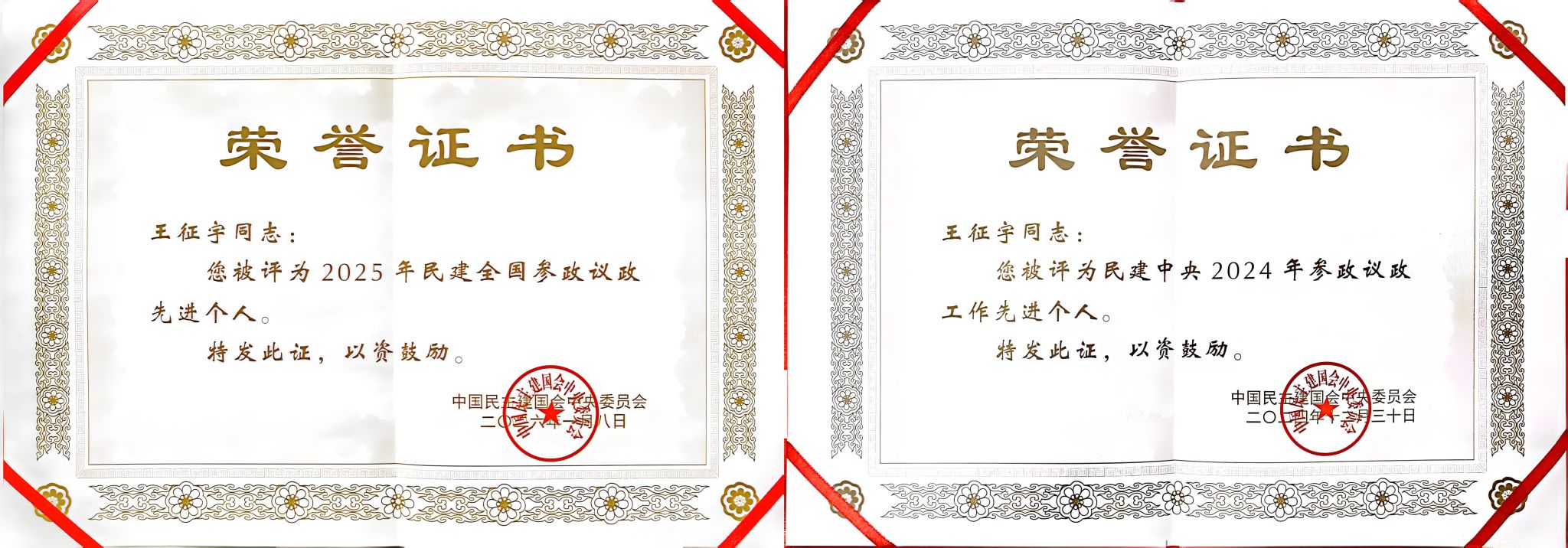 民建全国参政议政先进个人是民建中央面向全会各级组织与全体会员设立的参政议政领域年度最高级别专项表彰,是民建中央对会员参政议政履职能力与工作成效的权威认定。多年来,王征宇始终立足专业所长与民建经济界别特色,牢牢锚定国家发展大局、区域发展需求与民生重点关切,深度参与民建中央、黑龙江省委会调研成果征选、课题招标等各项重点工作,常态化开展深度调研,形成了一大批高质量的决策咨询报告、两会提案与社情民意信息。相关成果获得民建中央采纳,得到省部级领导同志批示,被政府相关部门转化为具体工作举措,曾获评省政协优秀提案、省政协重点提案,系列成果被全国政协、黑龙江省政协官方网站选登刊发。