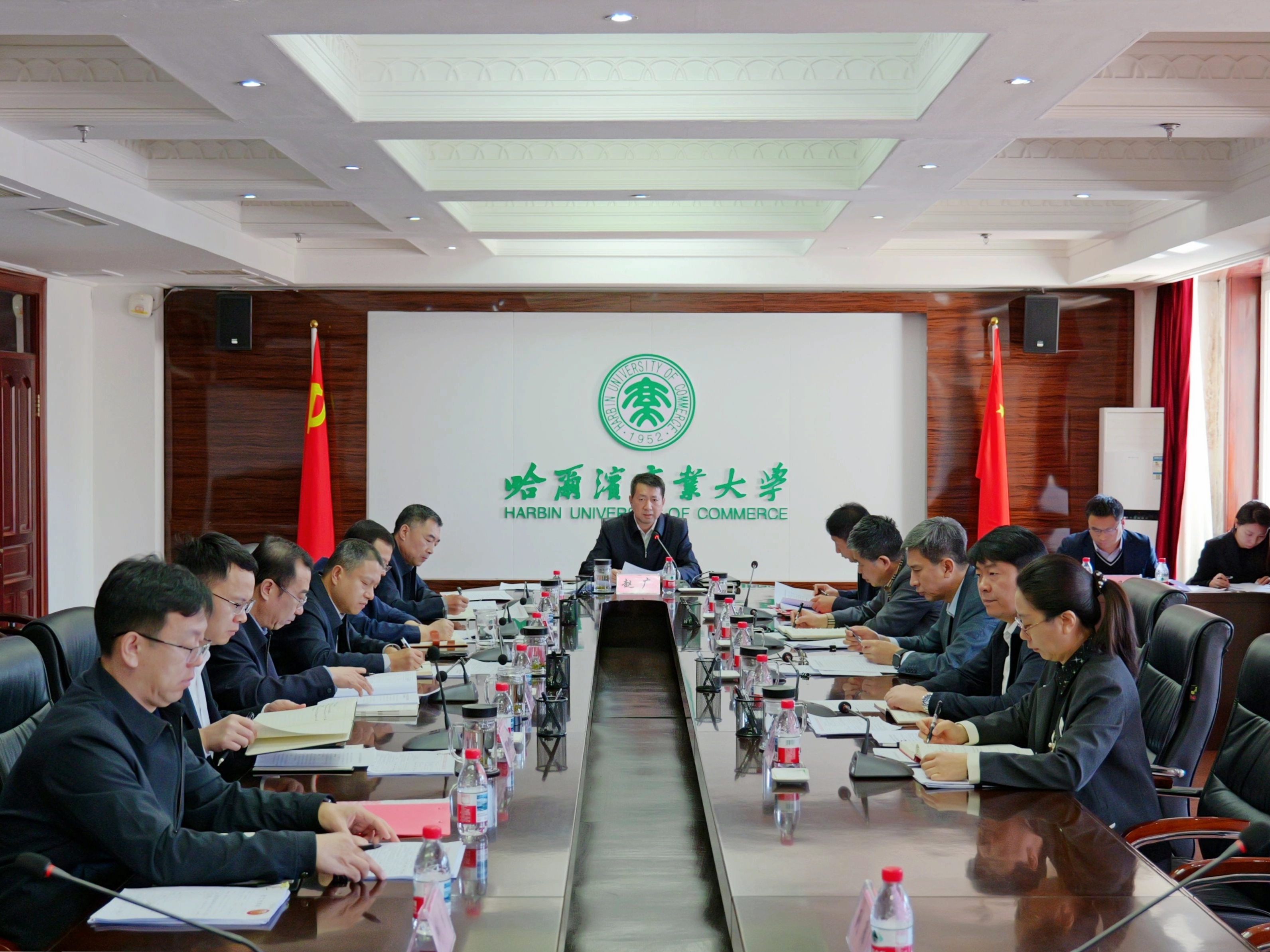会议还传达了全省深化事业单位改革动员部署会议精神、省委党建工作领导小组《关于进一步推动全省树立和践行正确政绩观学习教育扎实深入开展的通知》、省委书记许勤同志在中央巡视反馈意见整改工作专题会议和省委科技委员会第三次全体会议上的讲话,审定了第五届校学术委员会换届事宜、《哈尔滨商业大学2026版职教师资本科专业人才培养方案修(制)订工作指导意见》《哈尔滨商业大学校园食品安全突出问题专项整治工作方案》,研究通过了班子成员分工临时调整事宜,专题研究了保密工作。