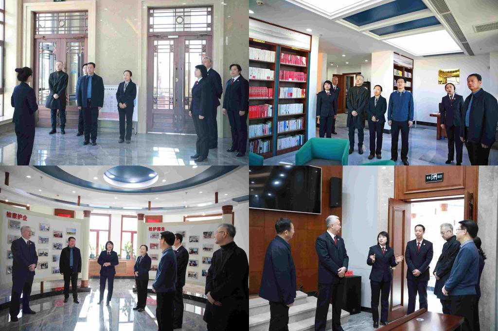 法学院参与签约仪式的代表们首先共同参观了哈尔滨铁路运输检察院12309检察服务中心、案件管理中心、工作展示区和省图书馆哈尔滨铁路运输检察院分馆,深入了解哈尔滨铁路运输检察院的工作业务流程、发展历程、特色优势、业绩成果,以及党建工作创新发展所取得的显著成果。参观过程中,双方就检察事业发展与法学高等教育的互促融合进行了简要交流。