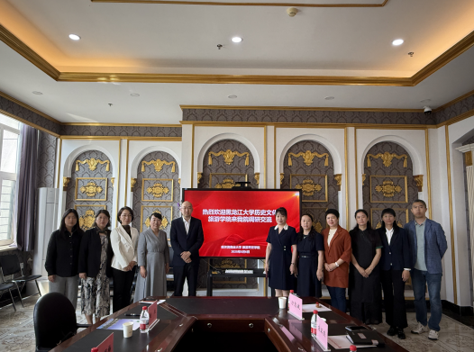 黑龙江大学历史文化旅游学院一行参观了学院文化墙及实验室,对我院的办学条件、文化积淀与实践教学成果给予了高度评价。双方聚焦新时代旅游管理专业高质量发展的核心议题,围绕人才培养模式创新、学科深度交叉融合、优质生源吸引策略、多元化就业渠道拓展等关键领域展开了深入探讨。两院立足各自鲜明的办学特色和资源优势,分享了在课程体系构建、实践教学模式探索、深化产教融合等方面的宝贵经验,并就当前面临的共性挑战交换了意见,共同探寻解决方案。