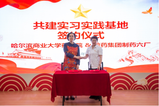 6月18日上午,药学院领导班子和各专业教师代表与哈药集团制药六厂党委书记刘秋丽及人力资源、运营管理和技术研发等有关职能部门负责人就校企合作各项内容展开洽谈。药学院院长李文兰与刘秋丽签署校企合作协议,哈药集团制药六厂为“哈尔滨商业大学药学院共建实习实践基地”。