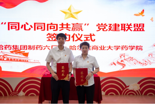 为增强学院与专业学科发展相关企业之间的党建合作,落实“党建+”理念,推动党的事业优质发展,6月18日上午,药学院领导班子和医药基础中药学专任教师党支部党员教师代表出席“同心同向共赢”校企党建联盟签约仪式。药学院党委书记张铁锋与哈药集团制药六厂党委书记刘秋丽签署党建合作协议。双方秉持合作共赢的原则,建立“深入相嵌、高度融合、一体运作、合作共赢”的良好合作伙伴关系,从加强党员队伍建设、开拓党建思路、提升党建工作质量入手,实现校企共同发展的目标。