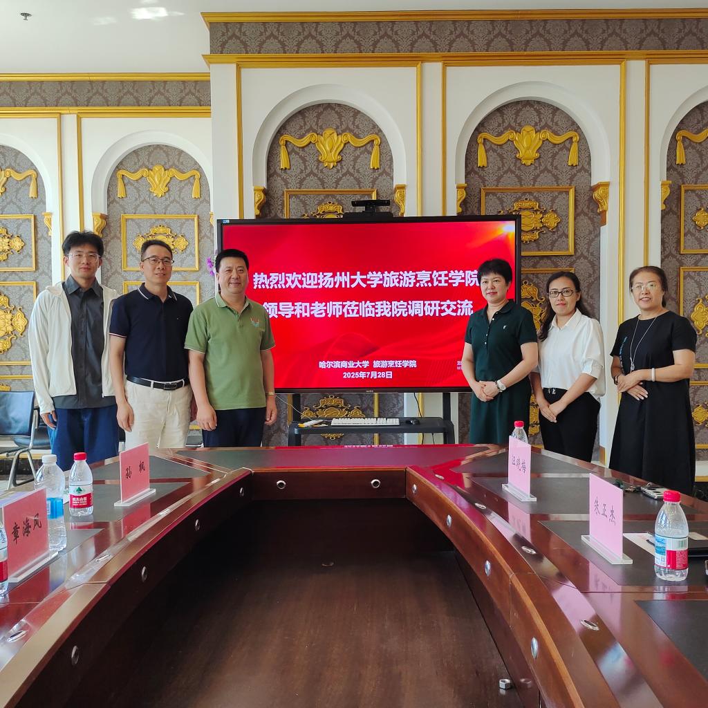 7月28日上午,扬州大学旅游烹饪学院院长助理、烹饪与营养系书记章海风,烹饪与营养系主任唐建华、旅游管理系孙枫一行莅临我校旅游烹饪学院开展调研交流。我校旅游烹饪学院副院长朱正杰、旅游教研室主任汪晓梅、烹饪教研室主任刘树萍参加会议。双方围绕烹饪与旅游专业建设、师资培养、人才培养、实践教学等议题展开深入探讨。
