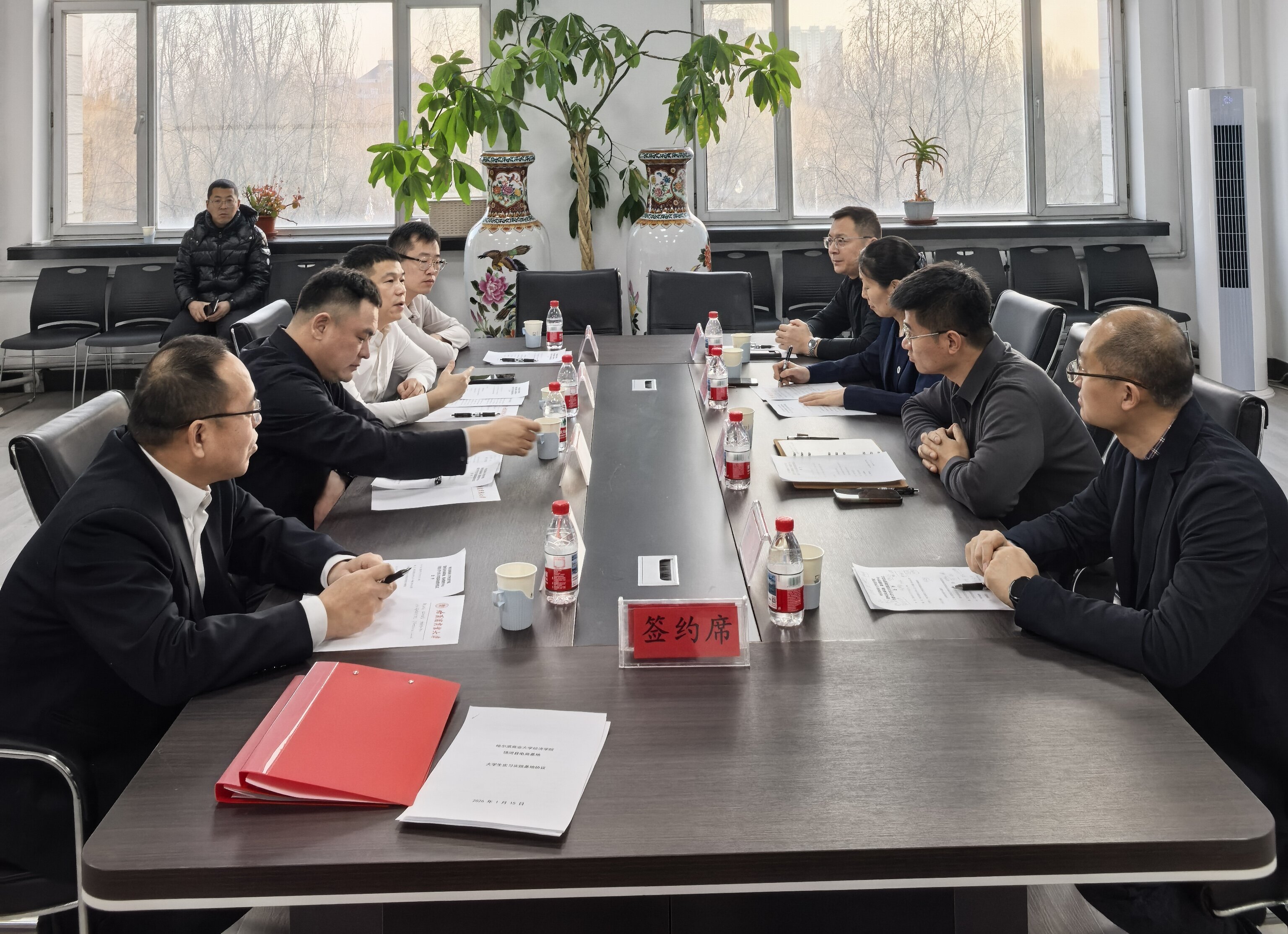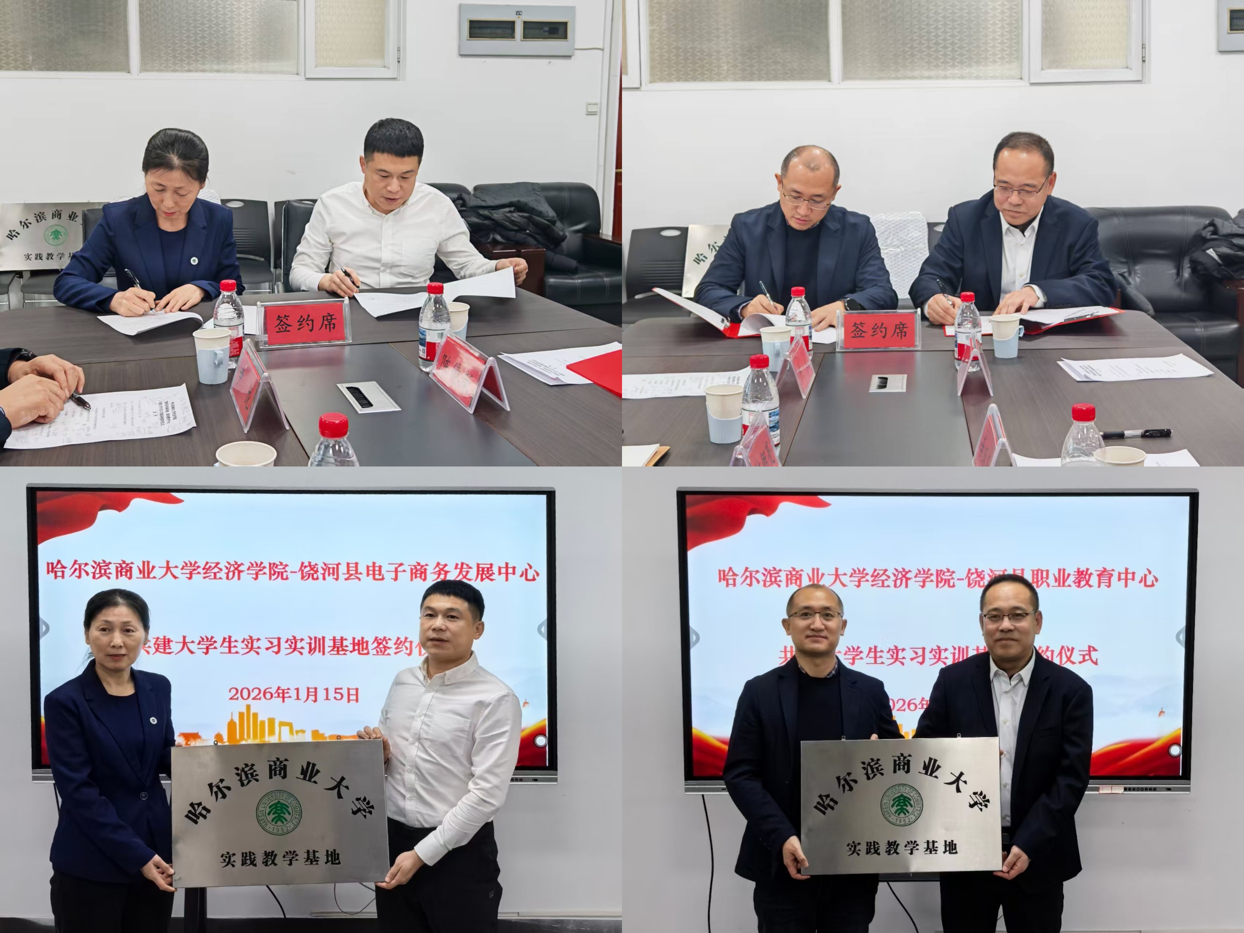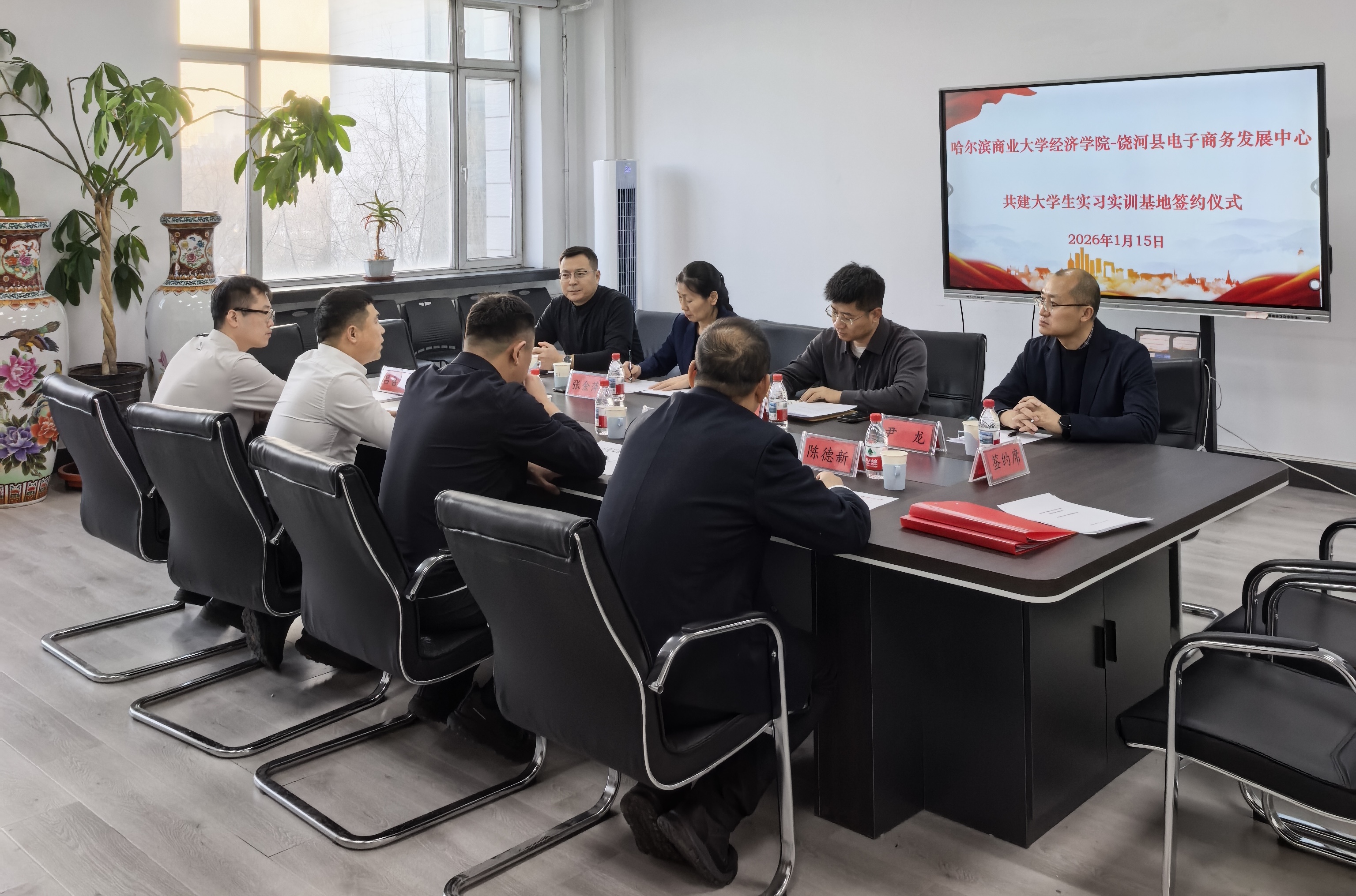 为进一步深化校地合作,共育新商科人才,搭建高校与地方资源共享、优势互补的合作平台,1月15日,经济学院与饶河县举行校地合作暨共建实习实训基地签约揭牌仪式。饶河县副县长辛延平,饶河县电子商务发展中心主任腾华军、外经贸综合服务中心主任吕昭键、职教中心副校长陈德新;我校经济学院党委副书记、院长韩朝亮,国际经济与贸易教研室主任张金萍、数字经济教研室主任尹龙,饶河援边教师卢尚坤参加会议。会议由韩朝亮主持。