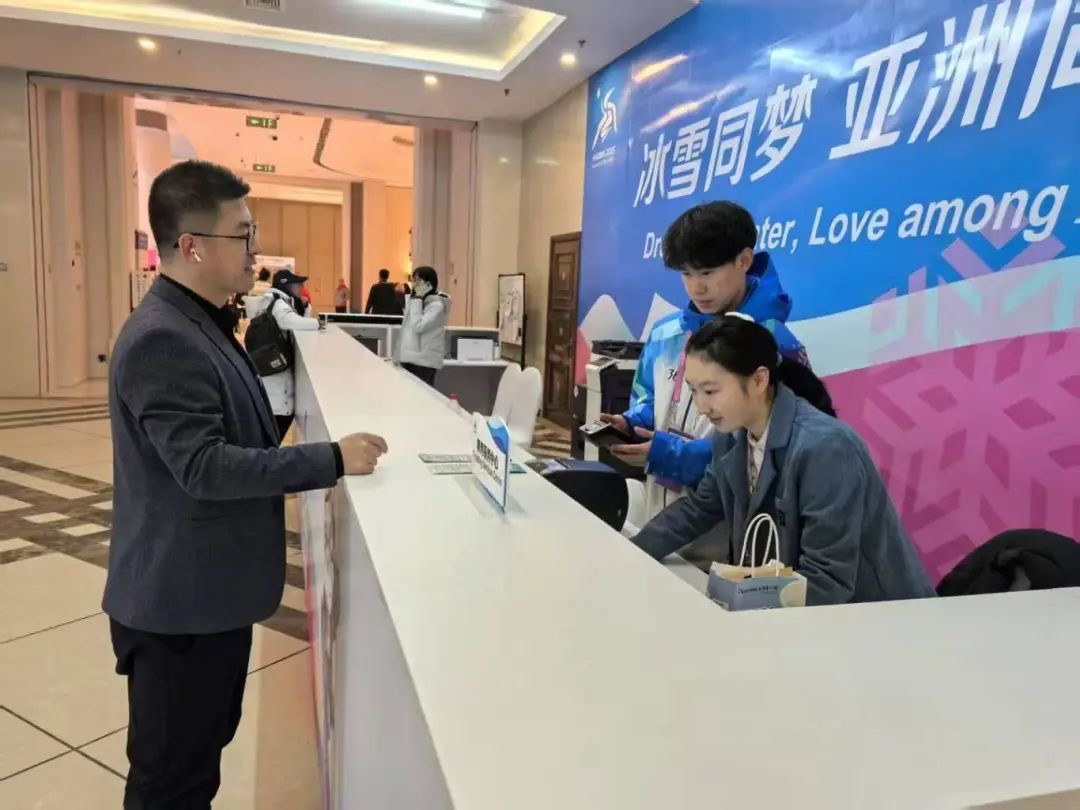 随着2025年哈尔滨第九届亚冬会的到来,华旗饭店运动员村也迎来了来自世界各地的冰雪健儿。作为整个赛事服务时间最长、接待人数最多的场馆之一,从1月27日开始,哈商大志愿者们便投入到特许商品销售和票务服务的各项工作中,为各国运动员、亚奥理事会官员等提供专业而温暖的服务。