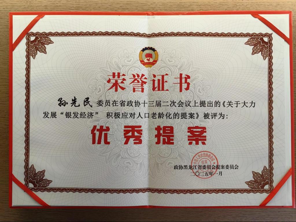 省政协常委项义军围绕数字经济、中俄贸易等经济问题提交了《关于持续拓展我省数字贸易高质量发展的建议》《关于以龙粤深度合作赋能中俄贸易高质量发展的建议》《关于持续增强哈尔滨省会城市辐射力带动力影响力的对策建议》《关于促进我省冷链物流加快发展的提案》;省政协委员孙先民围绕“银发经济”提交了《关于加快布局我省银发经济产业园区培育新的经济增长点的建议》,并在工商联和教育界别联组会议上以《积极应对人口老龄化 加快进入银发经济新赛道》为题作交流发言;省政协委员张劲松围绕特色文旅和农业现代化等问题提交了《关于大力培养生物制造产业 加快构建现代化产业体系的建议》《关于以新质生产力赋能我省特色文化旅游发展的提案》《建设粮食主产县农业产业链现代化 助推县域经济高质量发展》《完善高校就业支持体系 助力龙江毕业生高质量充分就业》;省政协委员阎力君围绕中药产业和民生政策提交了《关于聚力推进珍稀濒危中药材产业化,赋能我省新质生产力的建议》《关于正确执行在职研究生双证与工龄挂钩民生政策的建议》;省政协委员李恩临围绕文旅体育产业发展和“银发经济”提交了《关于整合旅游资源优化冰雪大世界服务的建议》《关于黑龙江借助亚冬会开展体育IP文化活动的提案》《关于推动黑龙江省“银发经济”发展的提案》;省政协委员刘西涛围绕低空经济提交了《关于以低空经济助推我省新型城镇化建设的提案》。会议对黑龙江省政协2024年度优秀提案和优秀委员进行了表彰,项义军、孙先民、李恩临提交的《关于加深对俄经贸互通合作 高质量构筑我国向北开放新高地的提案》《关于大力发展“银发经济” 积极应对人口老龄化的提案》《关于加强养老产业人才队伍建设 破除社区居家养老产业发展瓶颈的提案》等3项提案被评为“优秀提案”,张劲松、刘西涛被评为2024年度“履职优秀委员”。