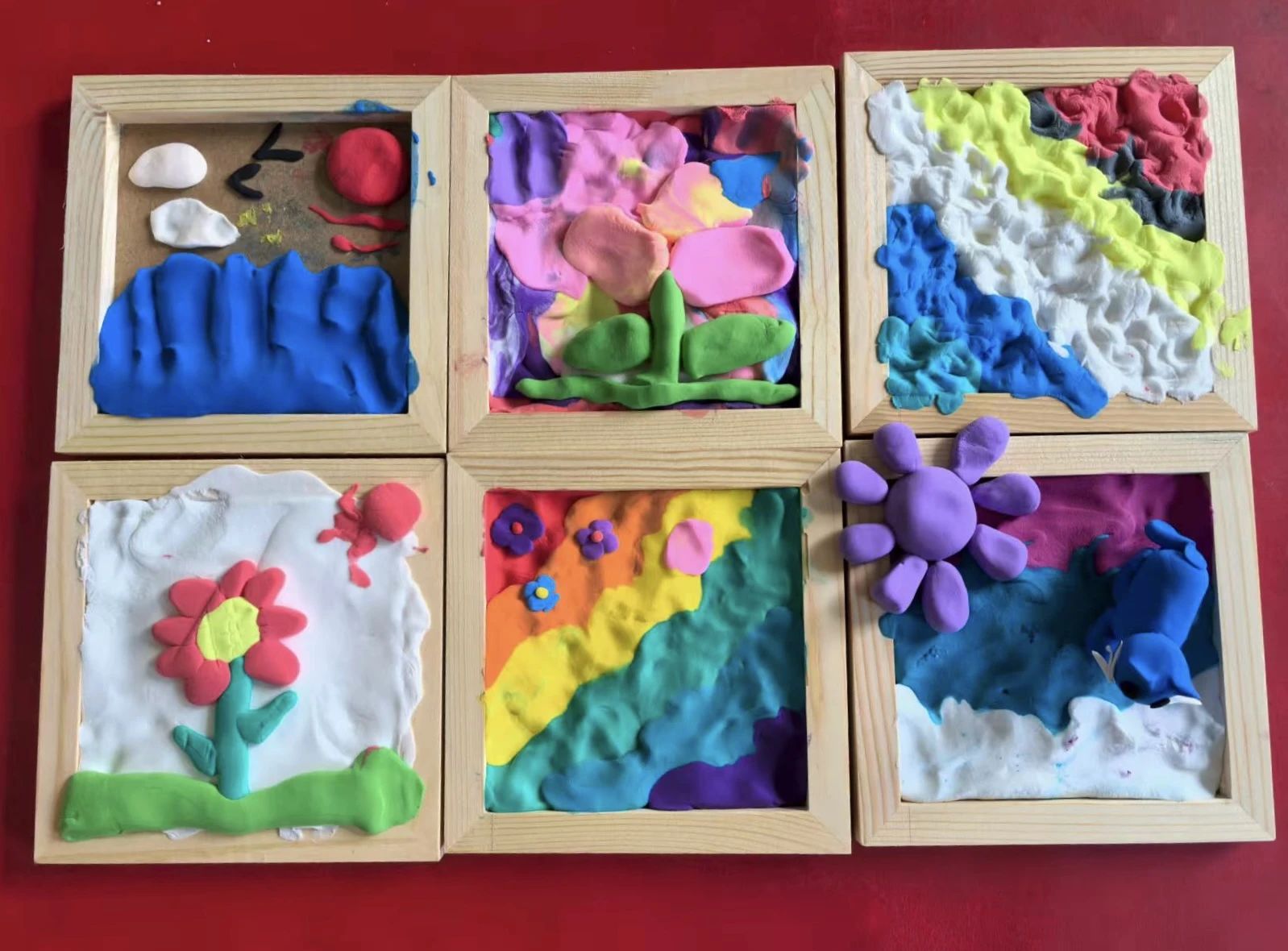 活动室里,创意的火花随处可见。有的孩子执着于用渐变色彩还原“彩虹”的模样,将红、橙、黄、绿依次排列在相框边缘,仿佛把天边的彩虹搬进了方寸之间;有的孩子偏爱星空,用深蓝色黏土打底,再捏出星星、月亮点缀其间,说要“把晚上的天空装进去”;还有的孩子创造了属于自己的“海底世界”,小鱼、贝壳、水草在相框上栩栩如生,仿佛下一秒就会游进现实。每一件作品都没有“标准答案”,却都烙印着孩子们最纯真的内心世界。