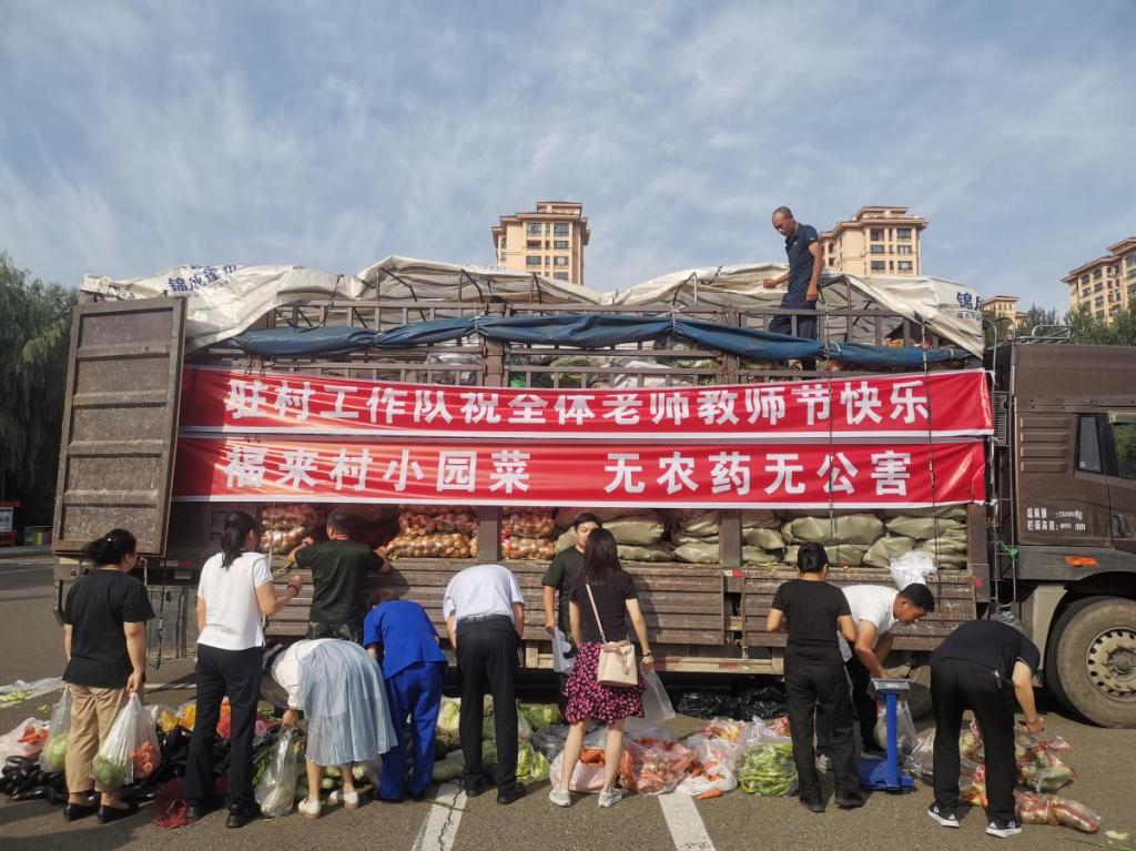 在第41个教师节即将来临之际,9月5日,在组织部、校工会和后勤管理处等部门的支持协调下,驻村工作队到校开展“校园助农·直采直供”消费帮扶活动。一方面,在行政楼前设置“福来村小园菜展销区”,集中销售玉米、土豆、窝瓜、茄子等绿色农产品,受到广大教职工欢迎;另一方面,在学校后勤管理处大力支持下,学校食堂和餐饮企业大批量采购新鲜绿色小园菜,助农采购土豆、玉米2万斤,实现农产品“直供校园餐桌”,让助农帮扶举措落到实处、见到实效。