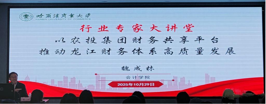 为深化研究生对财务数字化转型与财务共享平台建设的理解,10月29日下午,会计学院在4314报告厅举办行业专家大讲堂系列活动。本次讲座特邀黑龙江省农业投资集团原党委委员、总会计师,研究员级高级会计师魏成林先生,以“农投集团财务共享平台推动龙江财务体系高质量发展”为主题作专题讲座分享。会计学院副院长姜雪松、智能会计教研室主任刘阳、研管办副主任白洋及2025级全体研究生参加讲座。讲座由副院长姜雪松主持。