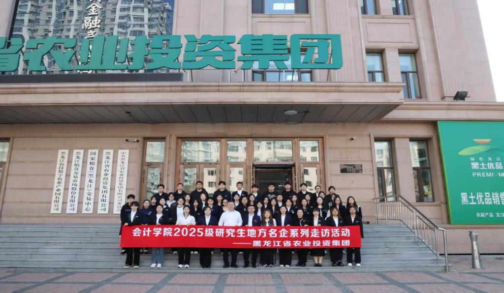 为加强校企合作,推动实践教学,拓宽研究生视野,9月23日,哈尔滨商业大学会计学院2025级研究生在学院副院长姜雪松、财务教研室党支部书记崔莹、教学秘书张瑜、研究生辅导员徐爽等教师的带领下,前往黑龙江省农业投资集团(以下简称“农投集团”),开展“地方名企系列走访活动”。农投集团财务部总监史国昕、高级业务经理陈思、财务共享中心主任王静、农投食品集团副总经理朱芳冰等出席活动。