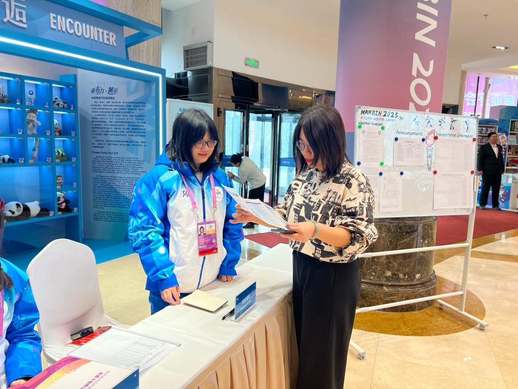 孟宏老师在亚冬会期间担任香格里拉酒店(OCA大家庭总部饭店)的语言服务经理,带领8名学生志愿者为总部饭店每日召开的亚冬会代表团大会的运行,及日常宾客的入住及出行等各个领域提供语言服务。她表示:“这次志愿服务让我深刻体会到为家乡贡献力量的荣誉感,也为中国成功举办亚冬会感到无比自豪。”