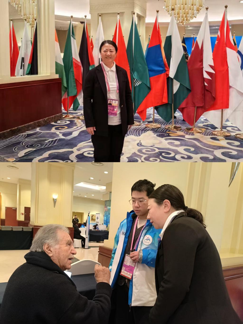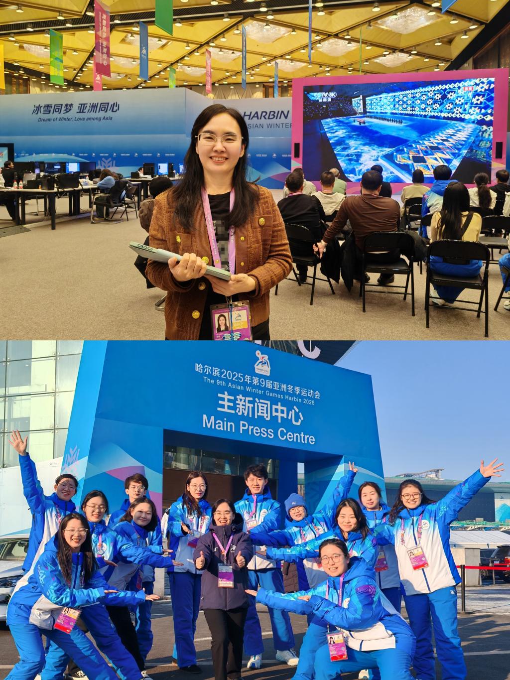 刘芳老师担任主媒体中心(MMC)的语言服务主任,负责协调新闻宣传与媒体运行部的语言服务工作,组织27家国外媒体、105位外媒记者们的一对一专属对接服务。刘芳老师表示:“亚冬会的志愿服务让我深刻体会到大型赛事背后的艰辛与付出。从筹备到赛事结束,我们团队共完成了12场新闻发布会的同声传译,服务了20多家境外媒体,翻译和校对了近4万字的文件。这段经历不仅是我职业生涯的高光时刻,更是我人生中难以磨灭的温暖记忆。”