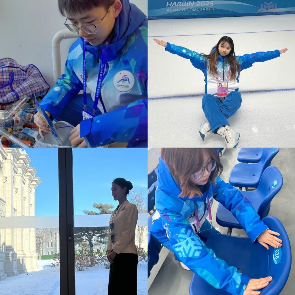 外语学院的9名学生志愿者也在各自的岗位上展现了出色的服务能力。王思龙同学在OCA大家庭饭店的综合办公岗,多次为外国宾客提供翻译服务;余果同学在速滑馆票务岗位,按票务管理规定严谨细致地处理票务工作,以确保票务工作规范有序;许彤彤同学作为志愿者管理服务助理,负责支持志愿服务日常运营,管理志愿者日常活动等,确保了志愿服务的高效运行;朱炳旭同学承担繁重的搬运任务,保障了物资的顺利调配;何乐宇同学在索菲特酒店的信息服务台,为亚奥理事会代表提供出行服务;罗爽同学在餐饮服务中,用细致的工作赢得了来宾的赞许;李金燕同学在省冰上训练中心速滑馆赞助助理岗位,负责做好广告和识别体系巡查,协助做好赞助企业接待工作,配合场馆内部品牌保护工作;李美琦同学在亚冬会欢迎宴会厅服务,从精准摆台到优雅上菜,每一环节都倾注心血,展现了她的热情与责任心。