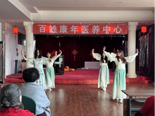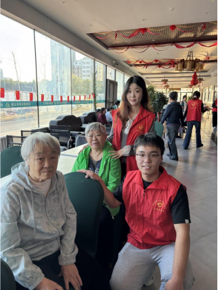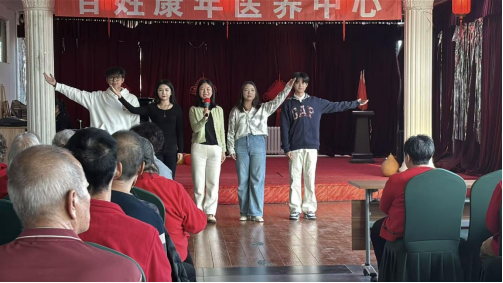 在重阳佳节即将来临之际,旅游烹饪学院“金晖行动”志愿服务队于10月26日走进百姓康年老年公寓,送上一场精彩纷呈的文艺汇演,用真挚的关怀与陪伴,为老人们送上节日的温暖与祝福。