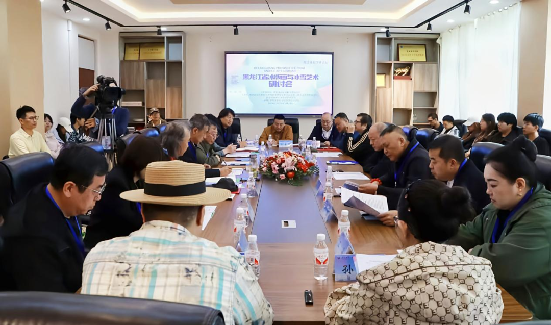 黑龙江东方学院艺术设计学院院长张建设在会上致辞,基地主任朱晓东、副主任张红风,太阳岛风景区冰雪发展事业部副主任盛琰,黑龙江冰版画艺术联盟副主任郑金男,哈尔滨师范大学雕塑系主任于猛,黑龙江外国语学院冰雪雕工作室负责人魏玉香,哈尔滨学院冰雪文化艺术研究中心主任祝劲松围绕冰版画和冰雪艺术的诞生发展、冰版画的创作与传承、东方美学视角下的写意冰版画等内容进行了交流研讨。