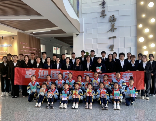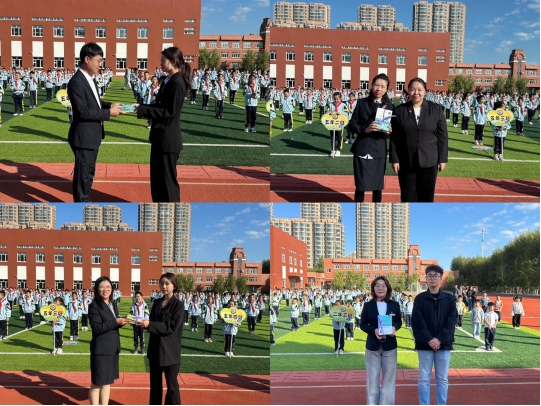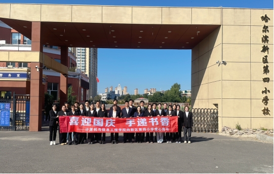9月22日,哈尔滨商业大学计算机与信息工程学院师生前往共建单位——哈尔滨新区第四小学,开展以“喜迎国庆,手递书香”为主题的升旗仪式暨爱心捐书活动,展现了青春力量与童年梦想的温暖碰撞,也是大中小学思政一体化的纵深发展。