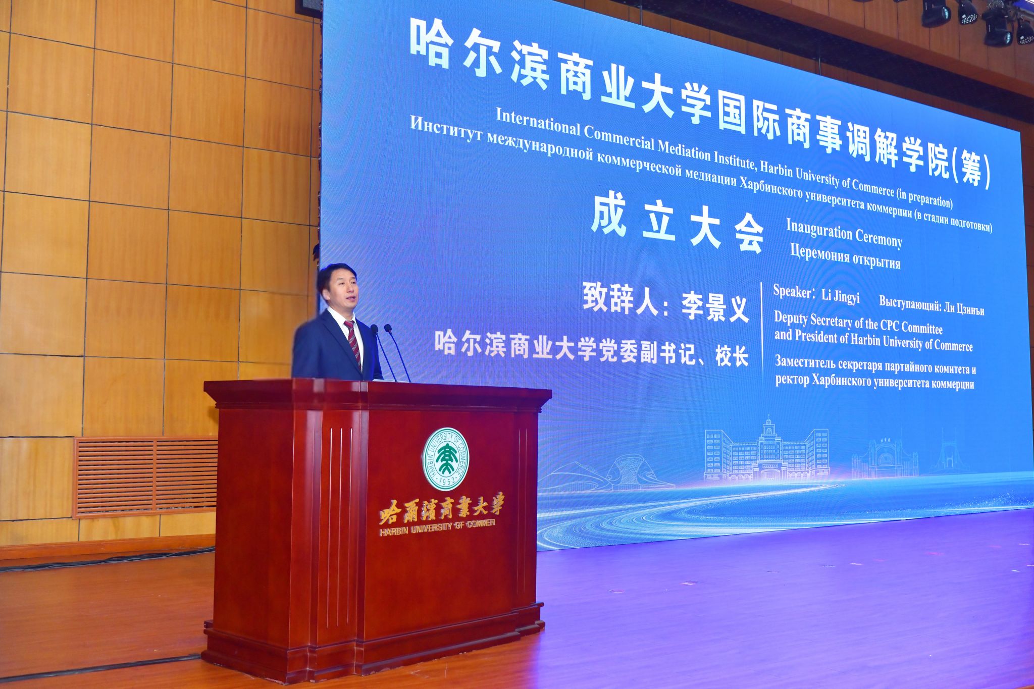 李景义在致辞中指出,学校始终扎根龙江沃土,坚守商科办学底色,深耕“经管法融合”特色办学之路,将服务国家战略、助力地方法治建设、对接行业实践需求全面融入人才培养全过程。此次国际商事调解学院的筹建成立,是学校主动顺应我国高水平对外开放新格局、契合国际商事争议解决发展新趋势、推进办学模式创新升级的关键举措。学校将切实扛起办学主体责任,坚持正确办学方向,充分发挥学科交叉融合与政校行协同共建的双重优势,以高起点谋篇布局、高标准推进建设、高质量落地发展,致力于将学院打造成为集人才培养、理论研究、实务培训、智库咨询、国际交流合作于一体的高水平平台,持续提升服务我国涉外法治建设与对外开放高质量发展的能力和水平。