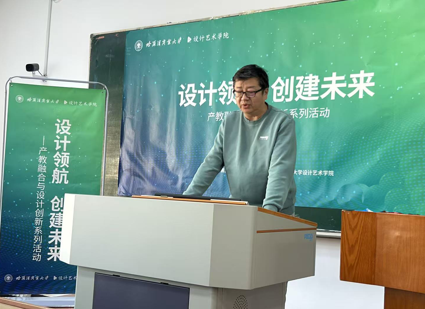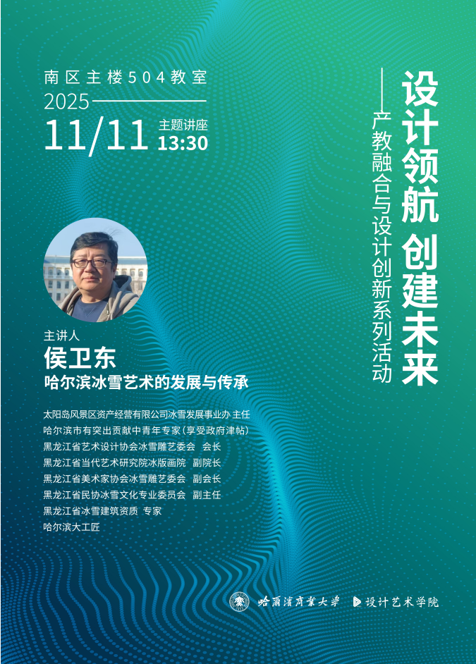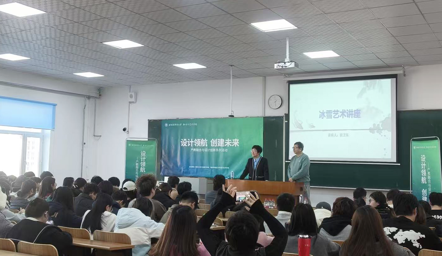 设计艺术学院“设计领航创建未来——产教融合与设计创新系列讲座”于11月11日在哈尔滨商业大学南校区举办。本次讲座特邀资深冰雪艺术研究专家、哈尔滨市太阳岛风景区资产经营有限公司冰雪发展事业办主任侯卫东,以《哈尔滨冰雪艺术的传承与发展》为主题,带领学院师生探寻哈尔滨冰雪艺术的演进脉络与文化内核。设计艺术学院党委书记陈明军出席讲座,副院长周威主持,相关专业教师及学生代表共同参加,现场交流氛围热烈浓厚。