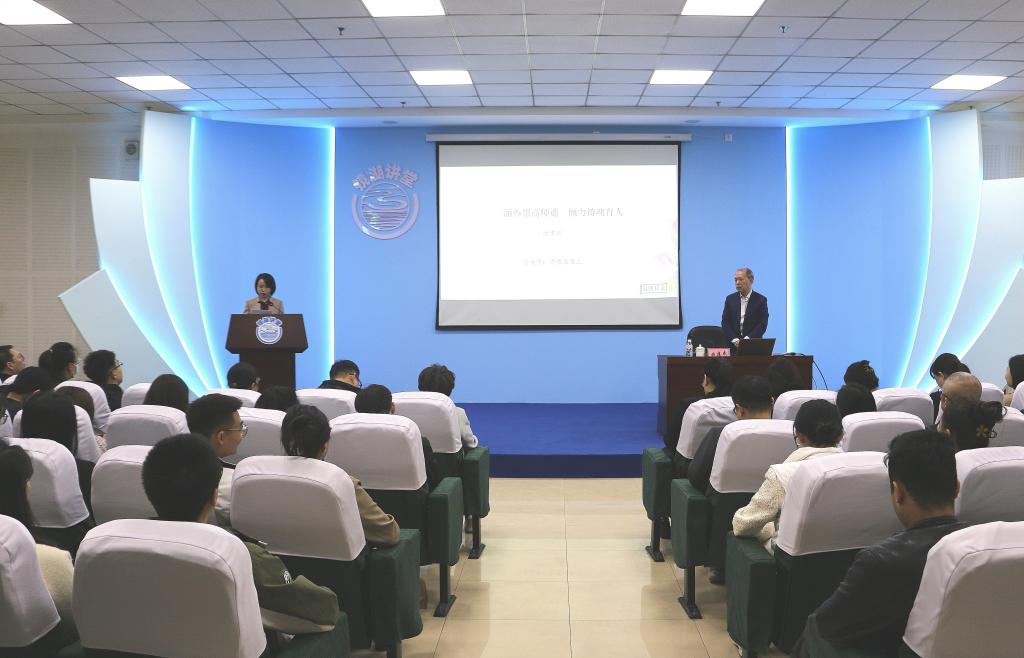 为大力弘扬教育家精神,深化干部能力作风建设,使我校辅导员践行为党育人、为国育才的光荣使命,推动思政育人工作向纵深发展,4月22日上午,我校邀请“时代楷模”“最美奋斗者”“全国师德标兵”“全国优秀教师”“全国道德模范”等荣誉称号获得者、大连海事大学曲建武教授来校作报告。各学院党委副书记、全体辅导员及师生代表到场聆听学习。报告会由学生工作部部长任婵媛主持。