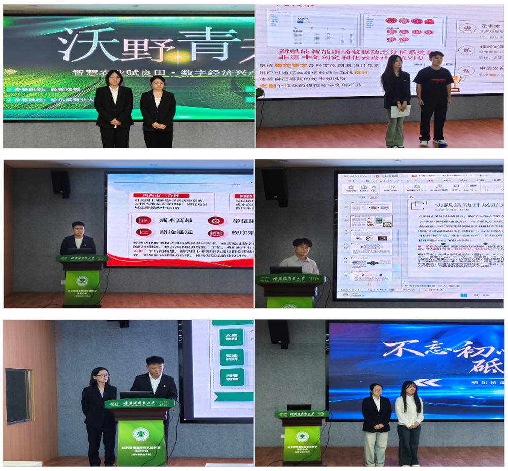 2025年新文科实践创新大赛校赛选拔赛分为网评和现场赛两个阶段。为保障赛事公平性与专业性,学校网评阶段特邀东北林业大学、东北农业大学等9名校外高校专家、行业实务人士组成评审团,围绕“创新性、实践性、学科融合度、社会价值”四大核心维度,对参赛项目进行分组匿名评审。经层层筛选,最终22支兼具思想性与落地性的优秀团队晋级现场赛环节。现场赛环节,学校特邀东北林业大学郝立丽、牡丹江师范学院韩驰、哈尔滨地山谦科技有限公司田春组成专家评委组,确保评审视角的多元性与专业性。比赛现场氛围热烈有序,22支团队依次通过“PPT演示+案例分析+成果展示”的形式,围绕乡村振兴、文化传承、数字治理等现实议题,从项目创新点、实践应用成效、未来发展规划等方面展开汇报,集中展现了我校学子在新文科领域的探索成果与实践能力。评委组针对每个项目逐一开展深度互动,既肯定了项目在跨学科融合、解决实际问题上的亮点,也从学术深度、成果转化路径、数据支撑完整性等方面精准指出不足,并提供可落地的改进方案,为参赛团队后续优化项目提供了宝贵指导。