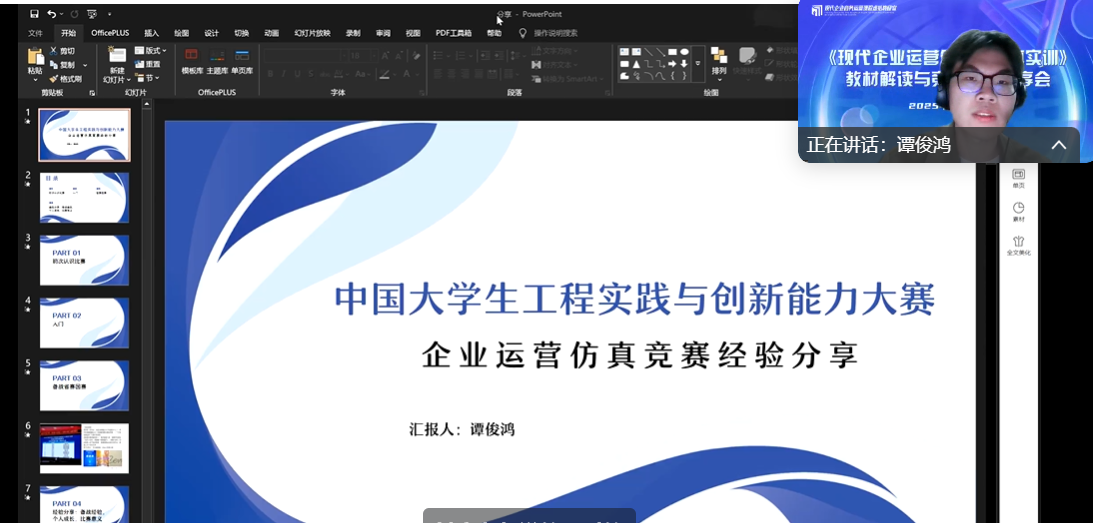 3月18日,由我校教育部现代企业商务运营课程虚拟教研室主办的《现代企业运营管理与仿真实训》教材解读与竞赛经验分享会以线上直播形式举行。会议聚焦新教材教学应用与国家级赛事备赛指导两大主题,全国虚拟教研室成员单位教师及2025年中国大学生工程实践与创新能力大赛参赛学生等700余名师生云端参会。会议由教学实验设备管理中心副主任关祥毅主持。
