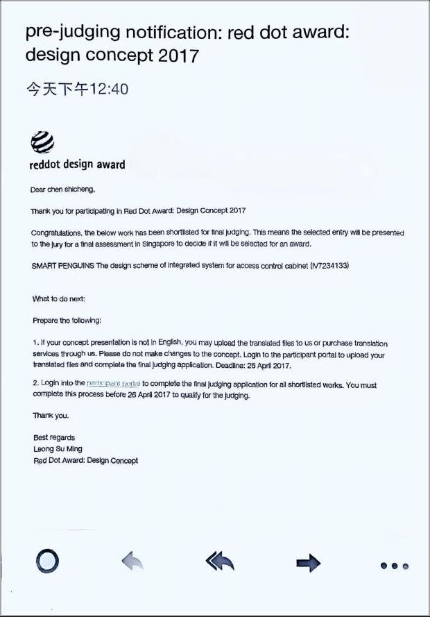 我意识到,专业能力才是学生建立自信的核心支撑。我结合自己研究的方向,指导小成参与专业竞赛。从选题构思到草图绘制,再到计算机辅助设计建模,我陪着他一遍遍打磨作品,手把手教他优化产品语意表达。那段时间,我们讨论的不仅是设计细节,更是如何用专业实力证明自己。2017年,小成的作品成功入围德国红点概念奖——这是我校设计专业学生获得的第一个世界级殊荣,也是对小成同学学习成果的最高肯定。如今的小成,已成长为国内知名设计公司的项目负责人,每次发来工作成果,都会特意提到:“老师,是您让我相信,我也能成为优秀的设计师。” 这句话让我深刻体会到,育人不是口号,而是用真心浇灌每一颗种子,用专业照亮每一段成长路。