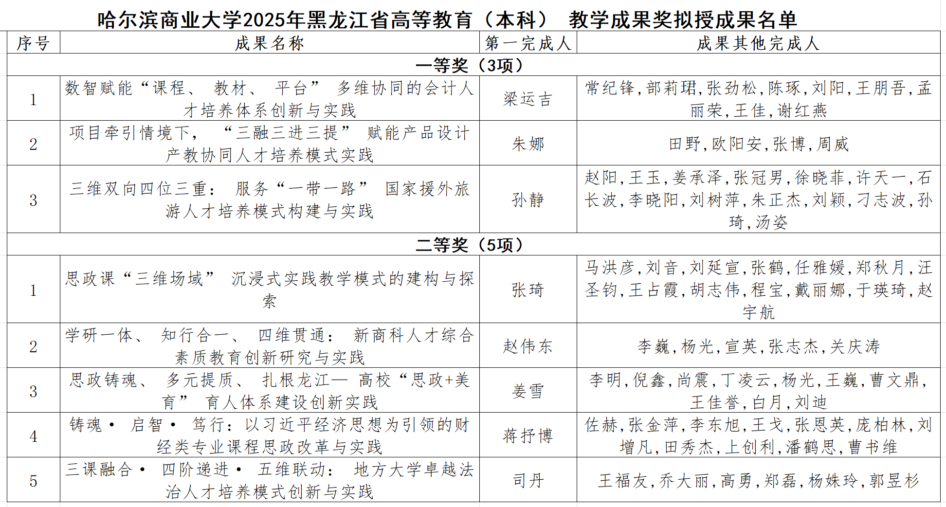 近日,黑龙江省教育厅对2025年省级高等教育(本科)教学成果奖拟授成果进行公示,我校获评高等教育(本科)教学成果奖共8项,其中一等奖3项、二等奖5项,高层次奖项数量取得新突破,充分彰显我校本科人才培养的鲜明特色与突出成效。