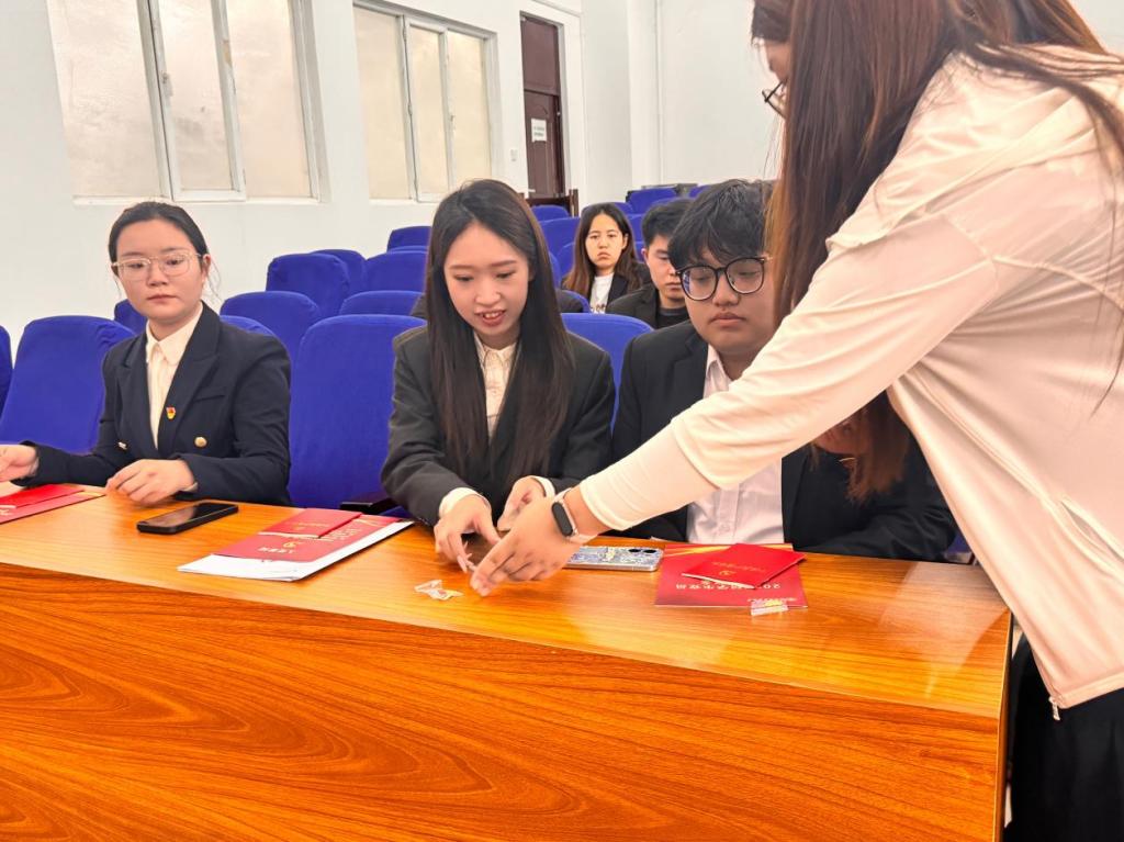 最后,学院向毕业生党员发放了党徽和党章,期许每一位毕业生党员将党徽佩戴在胸前,将党章铭记于心间,以党员的责任与荣光,踏上人生新的征途。