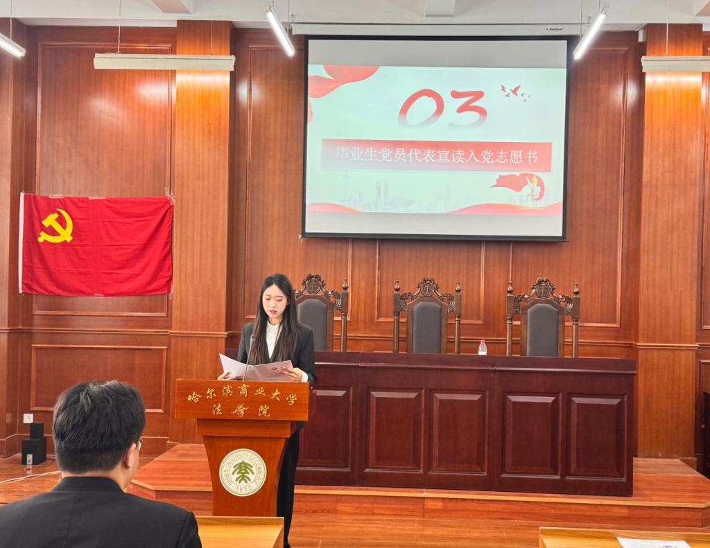 为强化2025届毕业生党员离校教育,筑牢理想信念根基,引导毕业生党员铭记初心使命,以坚定信仰奔赴人生新程,法学院于6月13日在模拟法庭开展2025届毕业生党员“最后一节党课”活动。