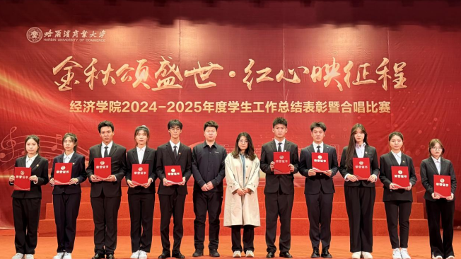 10月30日晚,经济学院2024-2025学年学生工作总结表彰大会暨“金秋颂盛世·红心映征程”主题合唱比赛在B区大礼堂举行。学院领导、全体辅导员、2023级2024级学生代表以及2025级全体学生参加会议。活动旨在总结过去一年学院学生工作的成绩与经验,表彰先进典型,同时以红歌传唱的形式,激发青年学子的爱国热情与集体荣誉感。