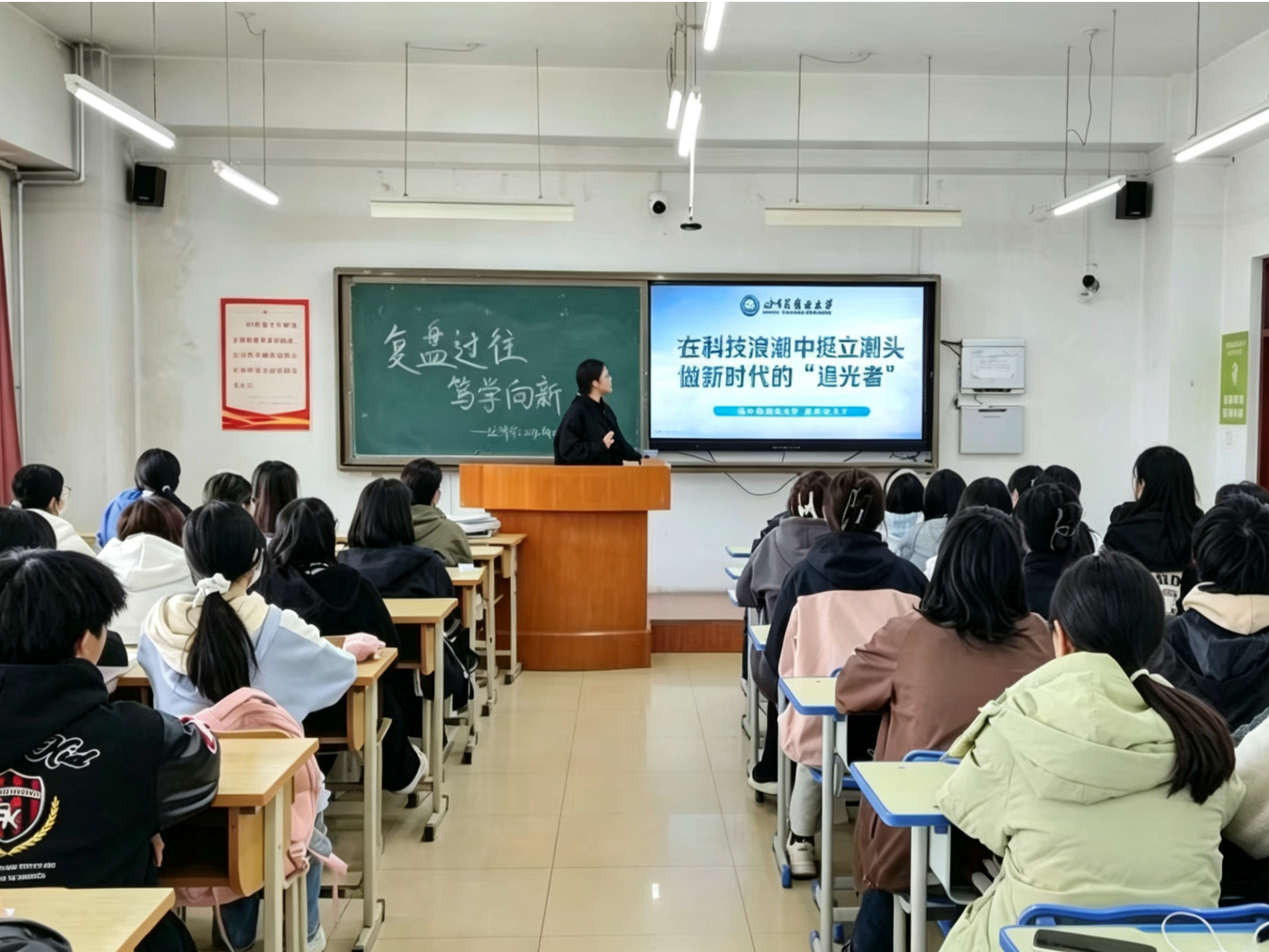 为深入学习贯彻习近平新时代中国特色社会主义思想,全面落实立德树人根本任务,引导青年学子准确把握时代脉搏、勇担科技强国使命,2026年4月,经济学院组织全体学生观看校党委书记赵广主讲的2026年春季学期“开学第一课”——《在科技浪潮中挺立潮头,做新时代的“追光者”》。