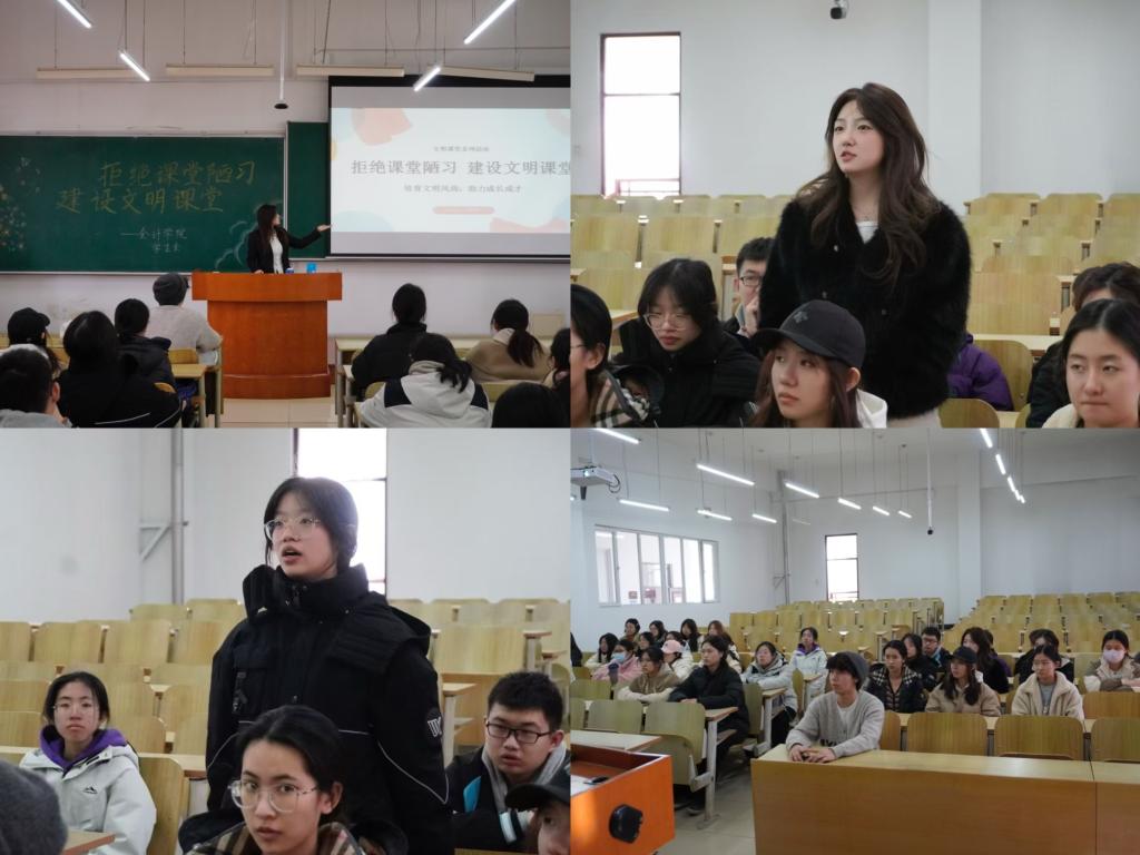 为营造文明、和谐、积极向上的课堂氛围,强化课堂教学质量,提升学生文明素养,会计学院组织开展了“文明课堂”创建专项活动,以良好的精神风貌迎接学校教育教学审核评估工作。