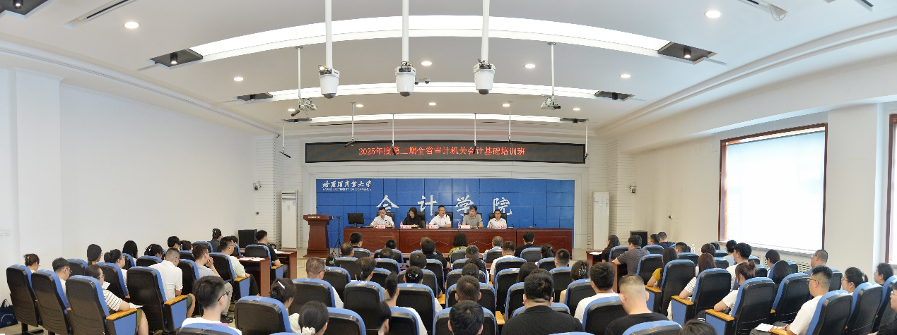 为全面提升黑龙江省审计机关干部队伍的业务素养与实操能力,夯实会计基础规范,强化审计监督职能,由黑龙江省审计厅主办、哈尔滨商业大学会计学院承办的2025年度第二期全省审计机关会计基础培训班开班式于7月7日在我校隆重召开。来自全省各市(地)审计局及审计厅的72名学员参加本次培训。开班式由哈尔滨商业大学会计学院副院长姜雪松教授主持。