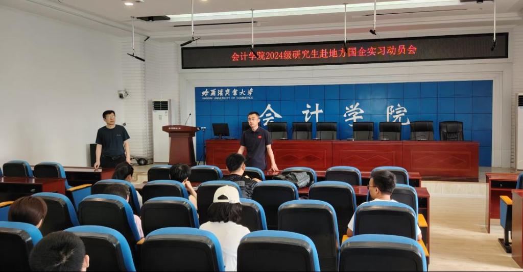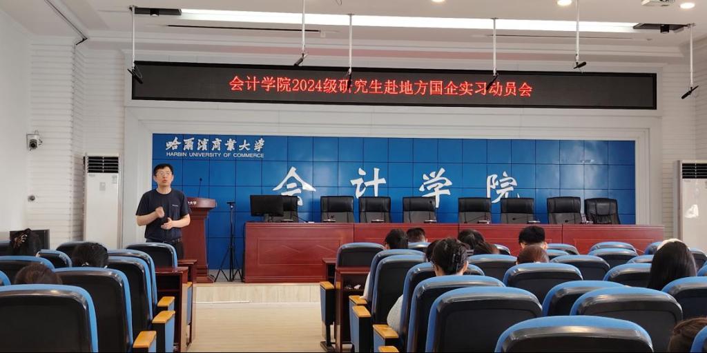 6月27日,哈尔滨商业大学会计学院在1501学术报告厅举行会计学院2024级研究生赴省内国企实习动员会。学院副院长姜雪松、研管办主任李新海、副主任白洋以及2024级研究生参加了此次动员会。