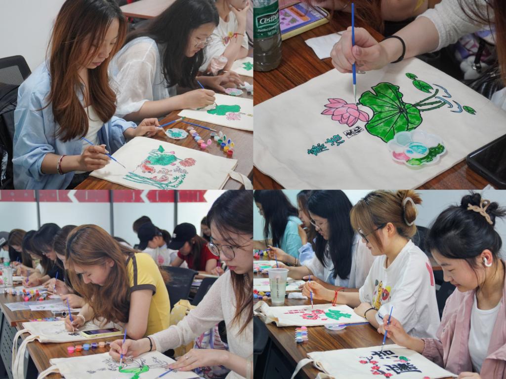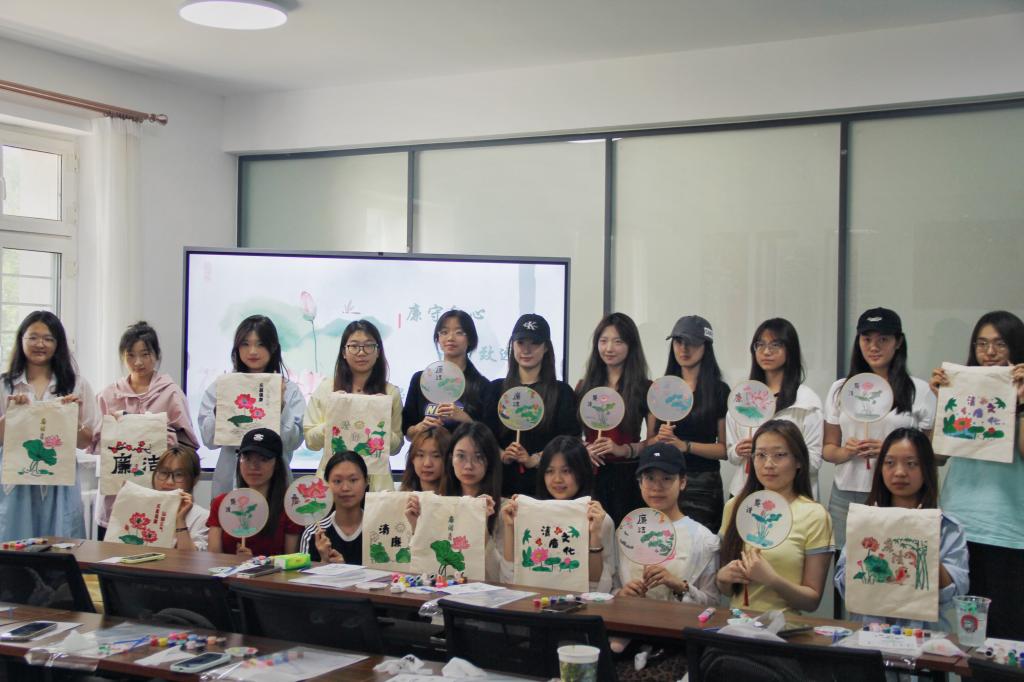 同学们化身“廉洁画师”,在纯白帆布包上勾勒出一朵朵清雅荷花,水墨晕染间,荷叶舒展、莲茎挺拔;搭配 “清正廉洁”“清风正气”等文字,将坚定理想信念定格成灵动画面,每一笔都饱含对廉洁精神的诠释。
