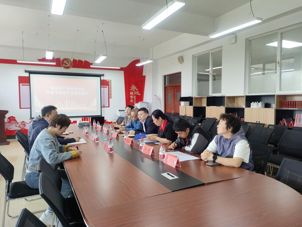 座谈会上,夏洪起表示国有资产管理处将落实好包联责任,深入了解师生普遍关注的热点、难点问题,实际困难和需求,主动上门服务,推动形成育人合力,促进学院人才培养。外语学院魏薇院长就学院目前面临的教学及办公设备老旧急需更新、办学及办公空间紧缺、资产年限久远亟待报废等现实困难进行了交流。班子成员也围绕学院语音室设备急需维修、学生实习岗位拓展、贫困生资助等相关情况与国资处进行了探讨。