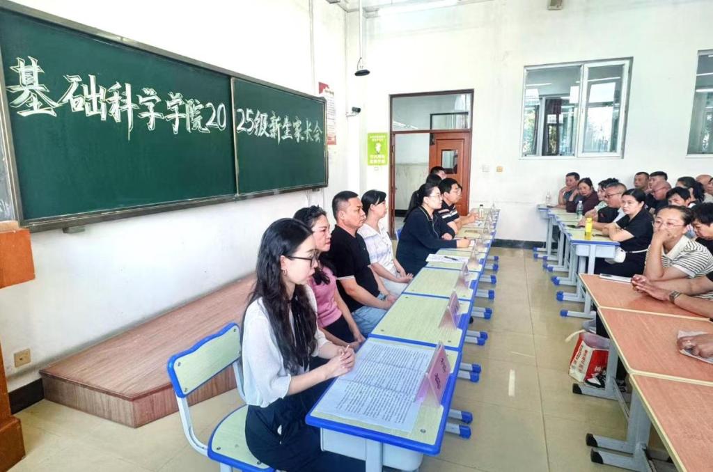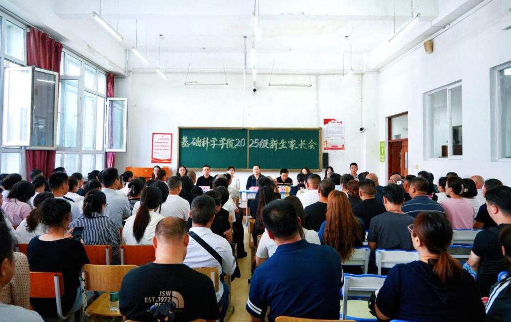为进一步深化家校协同育人工作质效,8月30日下午,基础科学学院在A区主教学楼0107教室召开2025级本科生家长会。学院党委书记许蕾、新闻学专业教研室主任李楠、数学与应用数学专业教研室主任张敬信、行政秘书叶晓庆、科研秘书王丽丽、教学秘书孙李红、教学秘书盛洁和辅导员赵宇航、郭菲,以及170余名新生家长参加会议。许蕾主持会议。