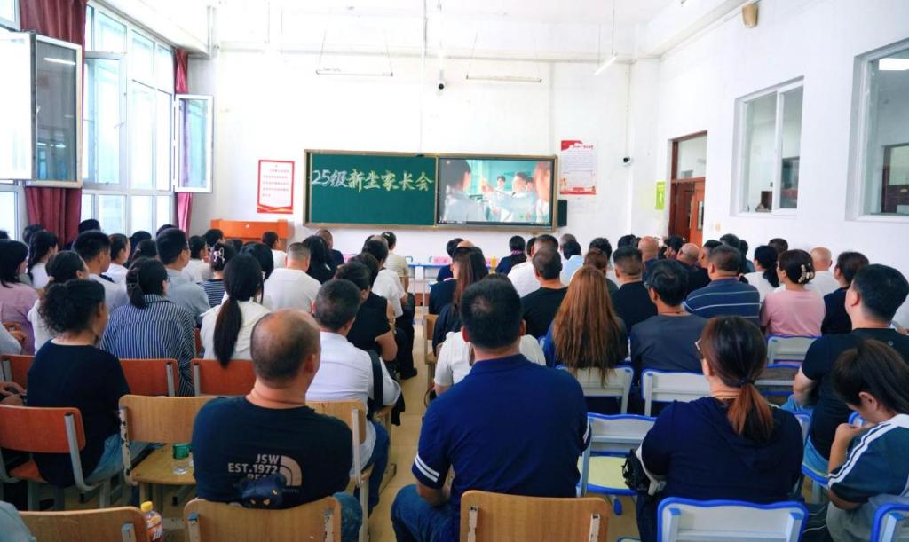 会前,2025级新生家长集体观看了学校形象宣传片。