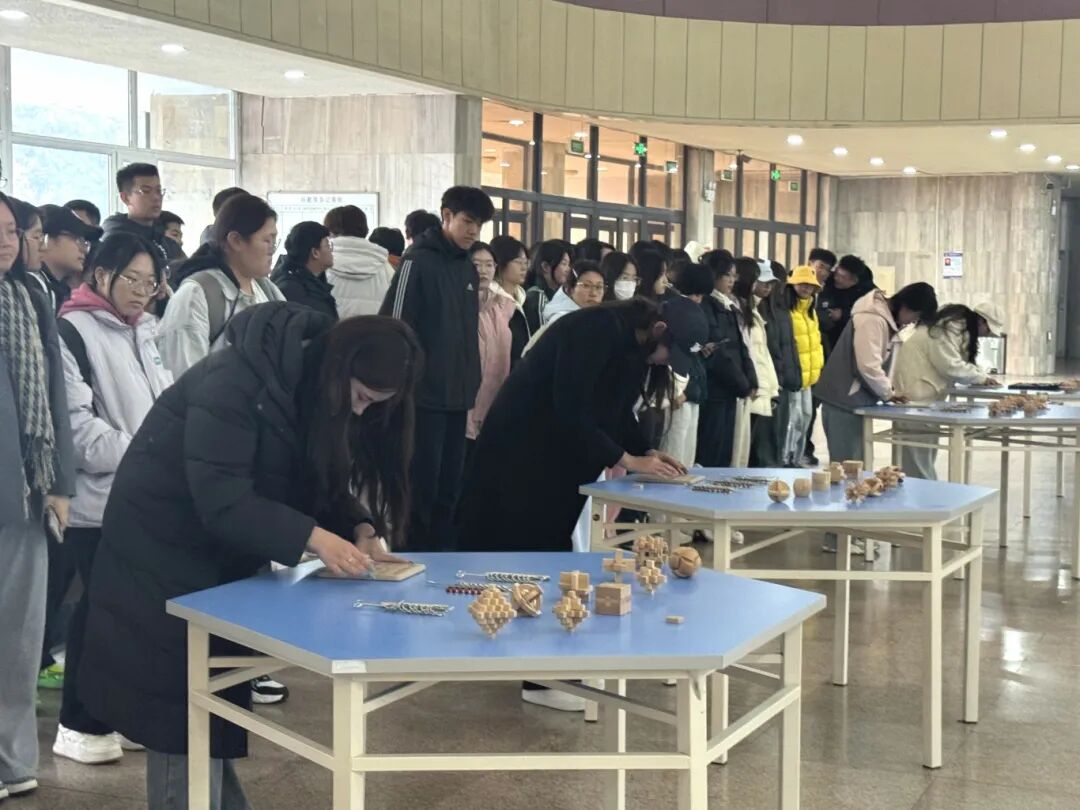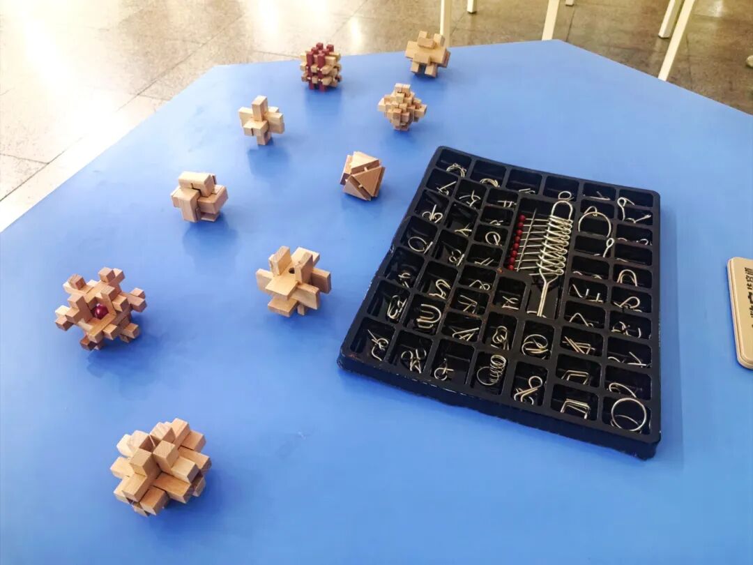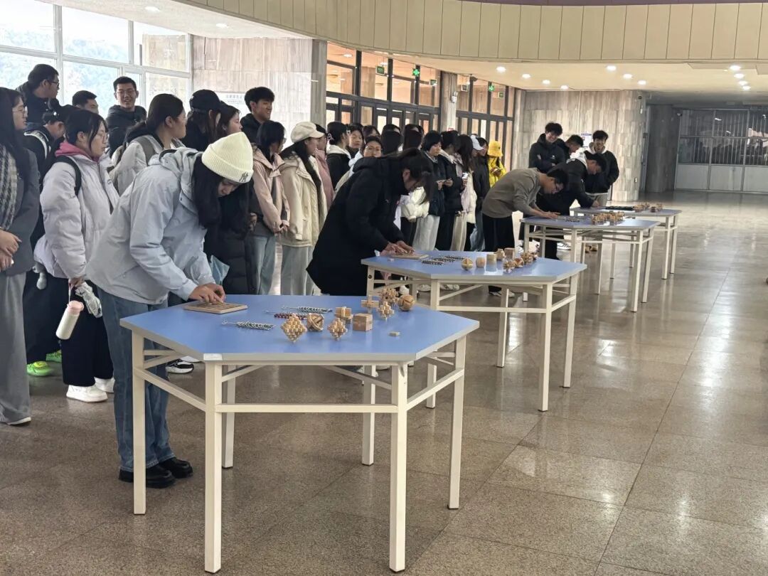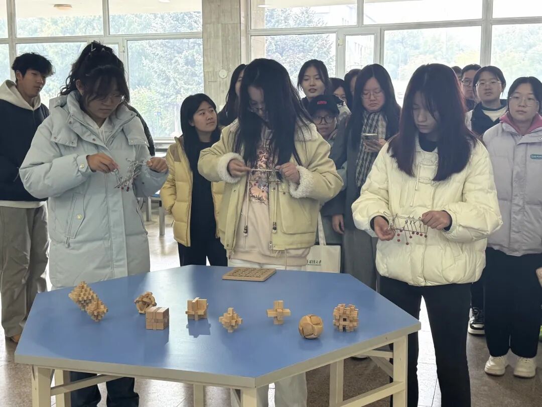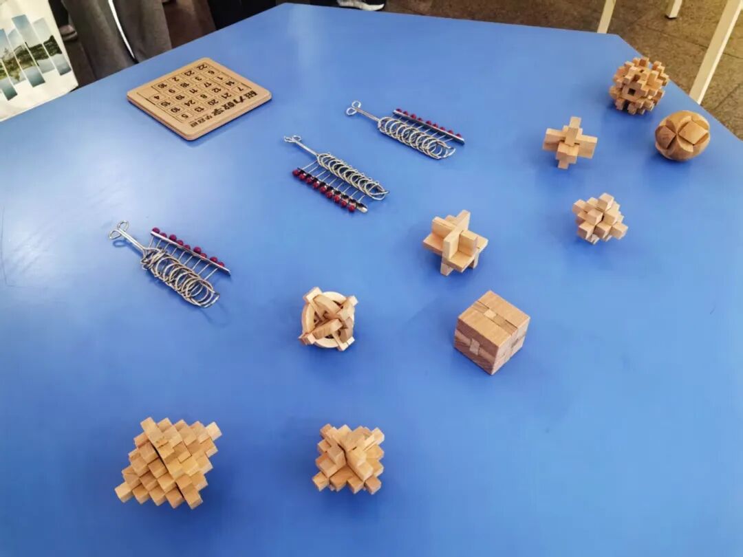 九连环挑战区同样吸引了大量爱好者。精巧的金属环环相扣,“叮当”作响的拆解声中,参与者们全神贯注,试图解开那看似复杂无比的连环结构。这不仅是对耐心和细致操作的考验,更是对递归、化归等数学思想的直观体验。参赛选手在成功解环的瞬间,脸上露出了豁然开朗与成就满满的笑容。