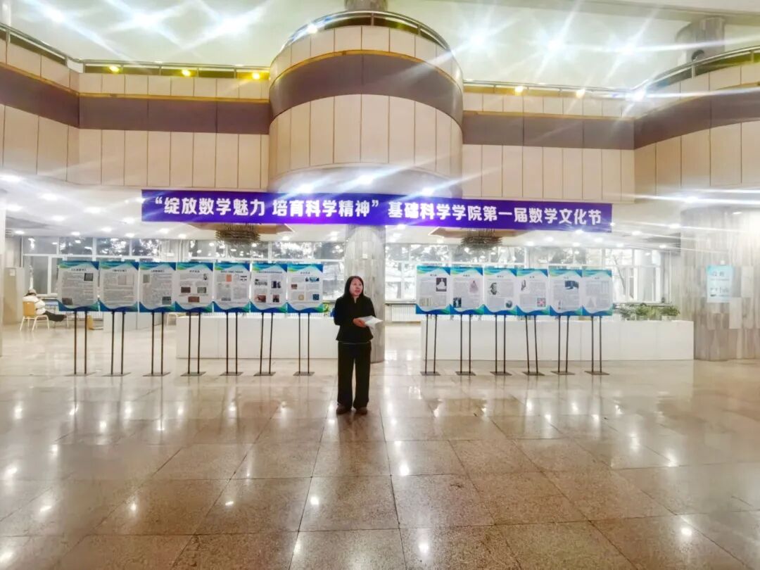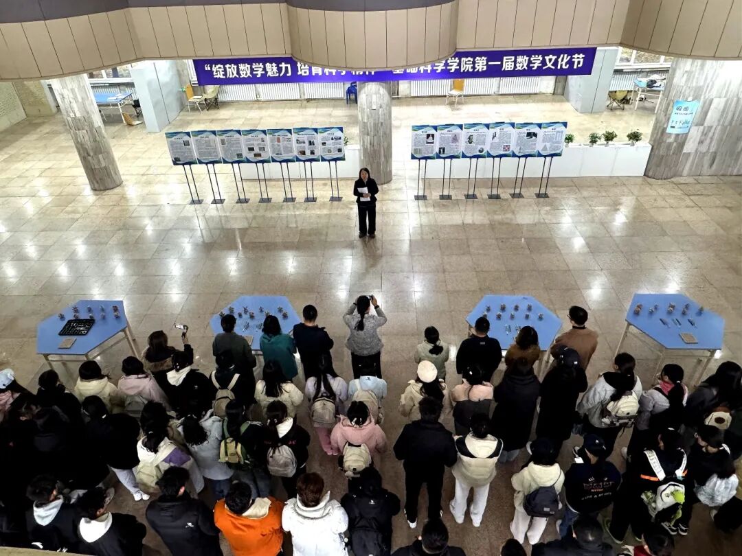 为进一步弘扬数学文化,彰显数学魅力,将数学文化有机融入校园文化建设,激发师生对数学的学习热情与探索精神,10月17日,基础科学学院以“绽放数学魅力,培育科学精神”为主题,在B04号楼大厅举办了第一届数学文化节开幕式。学院党委书记许蕾、院长焦艳会、数学与应用数学专业教研室主任张敬信、公共数学教研室主任范洪霞、行政秘书叶晓庆、教学秘书孙李红、科研秘书王丽丽和辅导员赵宇航、郭菲、王佳喜,以及100余名学生代表参加活动。