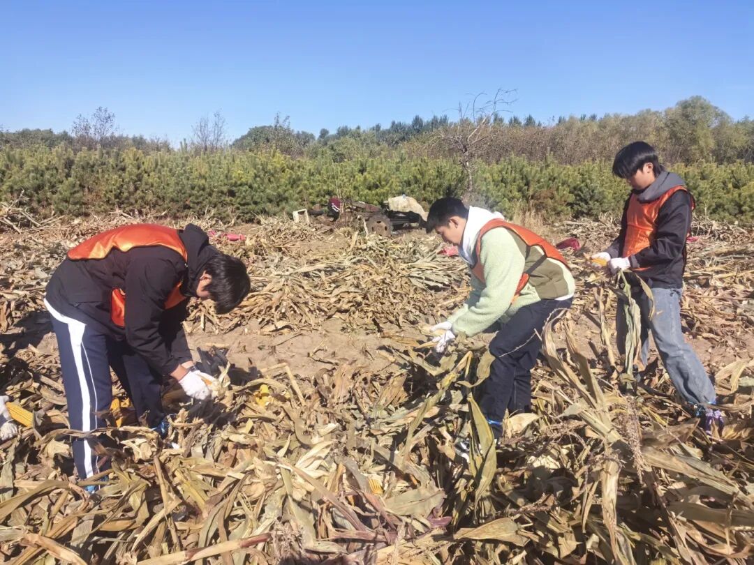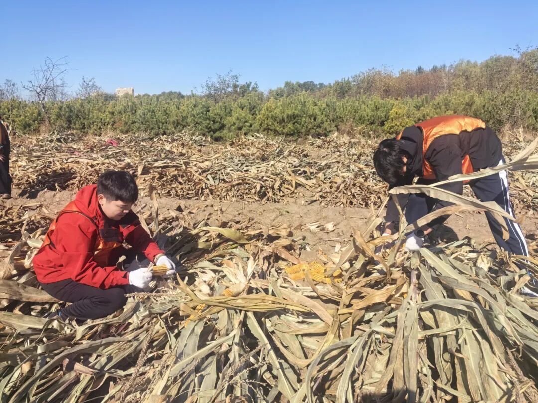 汗水是青春最美的“勋章”。起初的新鲜感很快被劳动的强度所取代,沉甸甸的玉米秆需要用力才能掰下,弯腰劳作不一会儿就让人腰酸背痛。同学们擦拭着额头的汗珠,脸上洋溢着笑容,“以前只知道玉米好吃,从没想过收获的过程如此不易”,“我们掰下的每一穗玉米,都凝结着农民伯伯一整年的心血”,“掰一上午玉米,比在健身房锻炼两个小时还累,但看到自己身后堆起的一座座‘金色小山’,我们感到非常有成就感”……学生们在最朴素的农业生产中,体会着劳动的艰辛与光荣。在与村民们的交流中,学生们也听到了许多课本上没有的故事——关于今年的收成、粮食收购价格、玉米精深加工、农业技术的变迁,以及对这片土地深沉的爱。