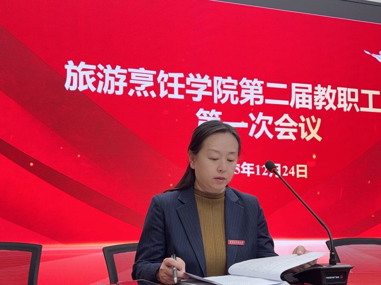 旅游烹饪学院党委副书记、院长孙静作学院工作报告
