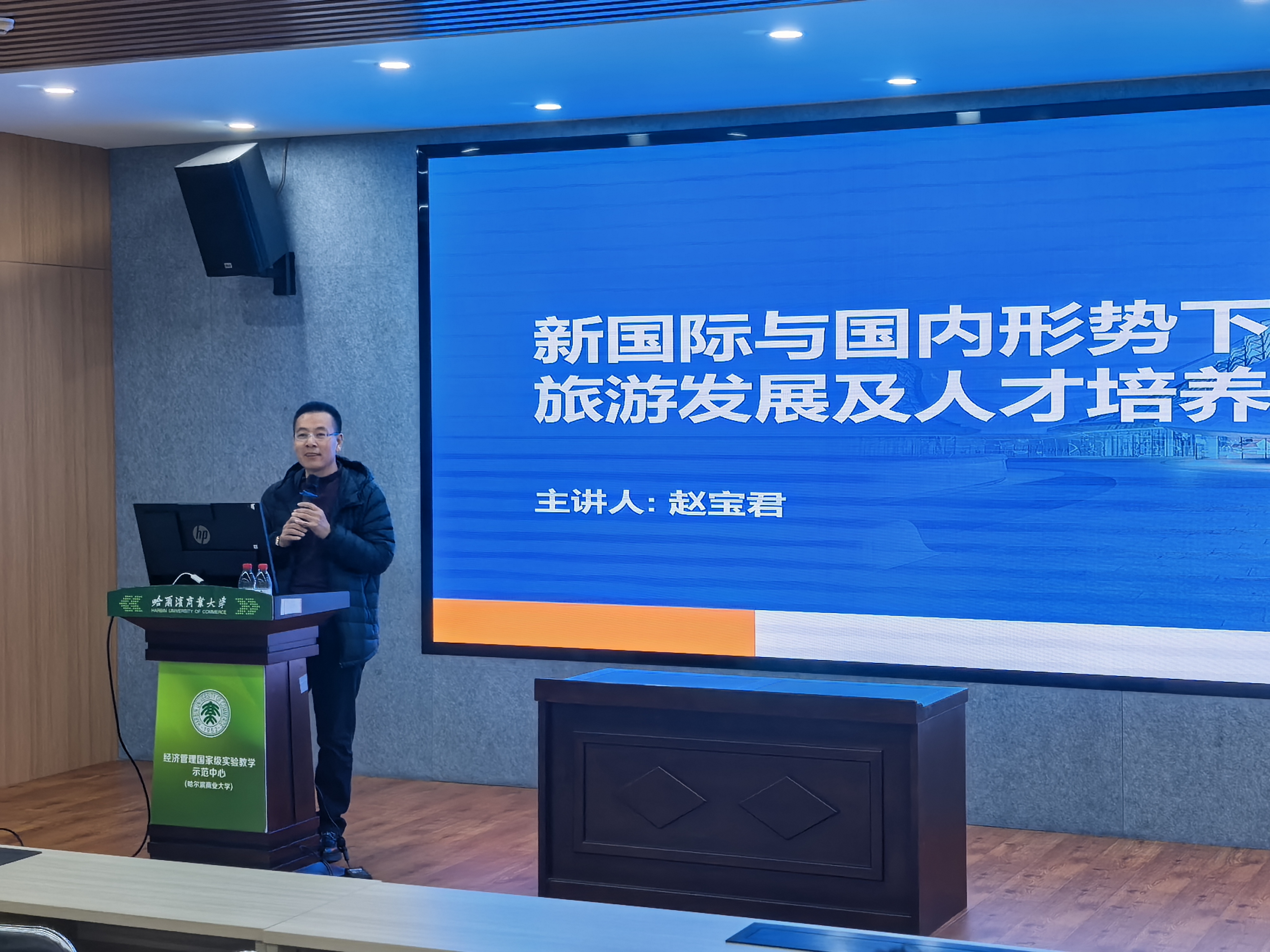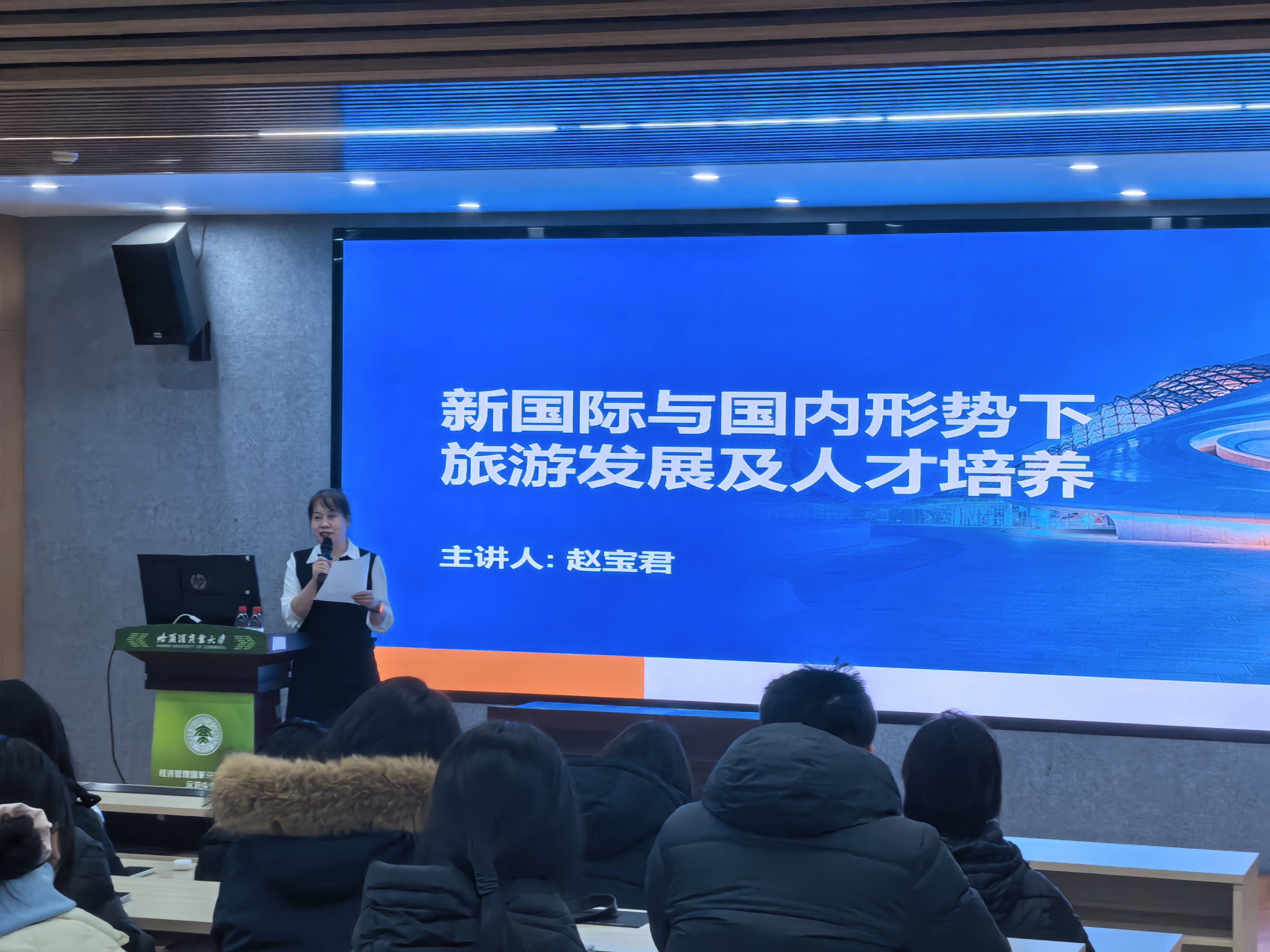 为帮助学子精准把握旅游行业发展脉搏,明晰职业成长路径,11月24日下午,旅游烹饪学院特邀学院1996届毕业生、哈尔滨太和水镇文旅实业有限公司、哈尔滨帽儿山天马旅游景区管理有限公司、哈尔滨帽儿山文旅有限公司董事长赵宝君做客“镜湖讲堂”,作“新国际与国内形势下旅游发展及人才培养”专题讲座。讲座由旅游烹饪学院党委书记李晓阳教授主持。160余名旅游相关专业学生现场聆听,并与赵宝君董事长面对面交流,收获满满。