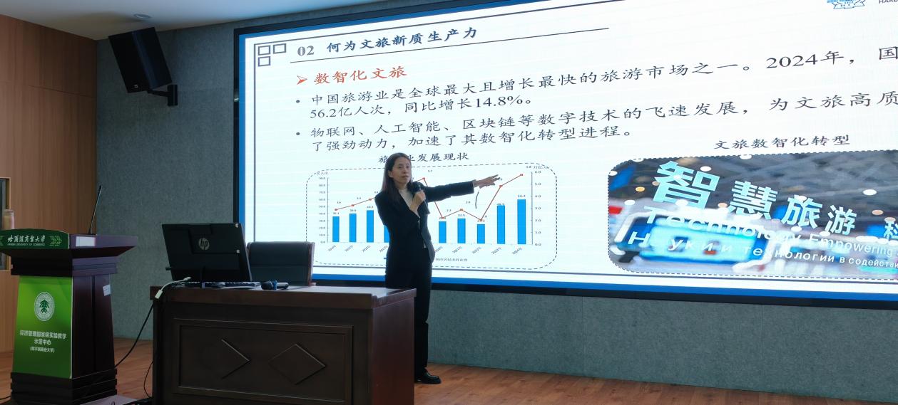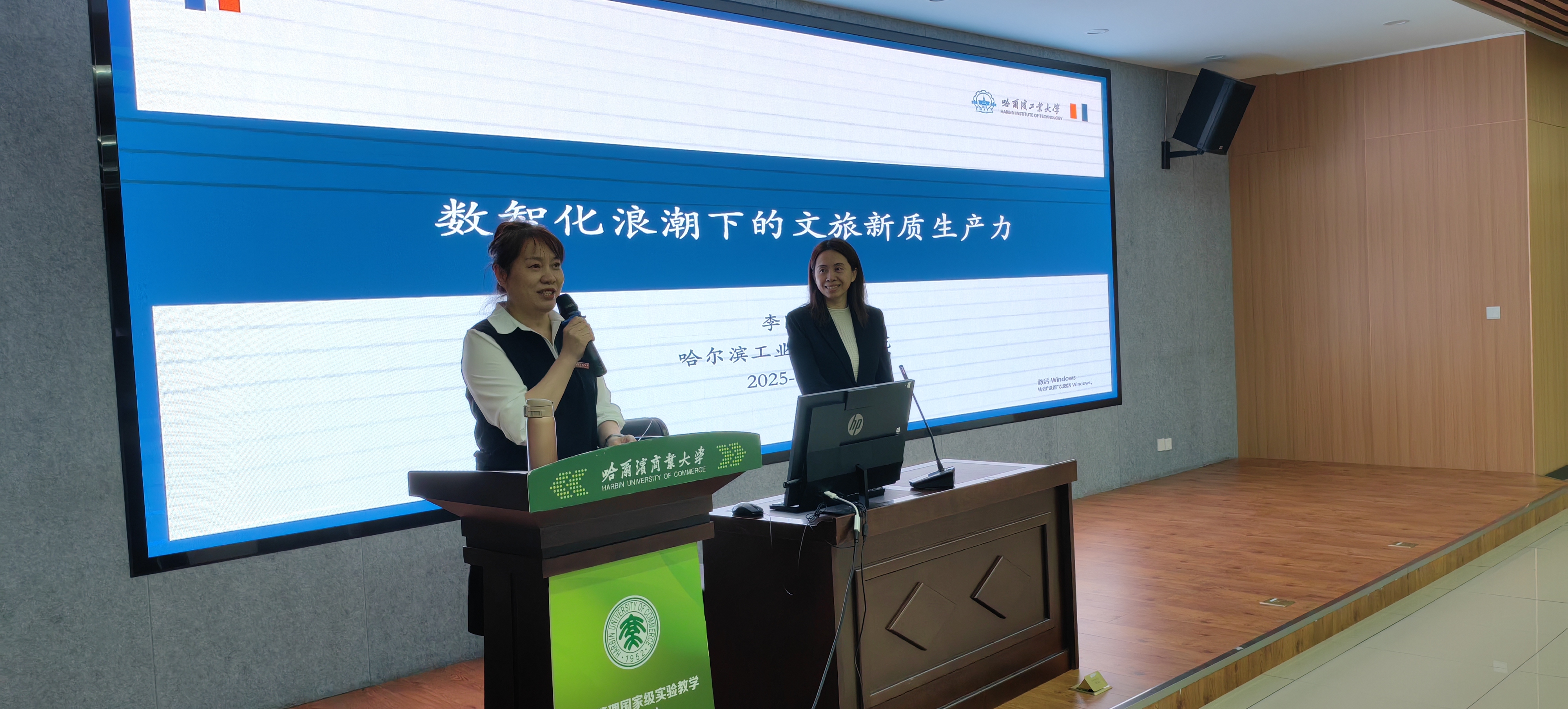 近日,旅游烹饪学院特邀学院96届优秀毕业生、哈尔滨工业大学商学院教授、博士生导师、黑龙江省高层次人才、黑龙江省交投集团权属二级企业外部董事、中美富布莱特研究学者李国鑫做客“镜湖讲堂”,开展题为《数智化浪潮下的文旅新质生产力》的专题讲座。讲座由旅游烹饪学院党委书记李晓阳教授主持。