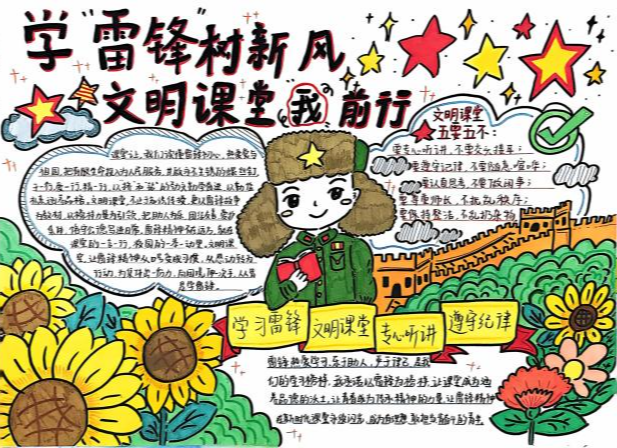 为让雷锋精神以更生动的形式浸润校园,学院组织开展系列文化创作活动。“以青春之声,传雷锋精神”雷锋事迹主题朗诵活动中,学子们以声传情,用饱含深情的诵读传递雷锋精神的温度与力量;“学雷锋 树新风·文明课堂我先行”手抄报评选活动中,同学们用画笔勾勒雷锋光辉形象,用文字传递无私奉献精神,每一份作品都凝聚着对雷锋精神的理解与传承;开展雷锋精神主题读书分享会,多位同学围绕《雷锋日记》等经典书籍,用青年视角诠释“奉献、友爱、互助、进步”的精神内涵,让雷锋精神在书香中焕发新生。