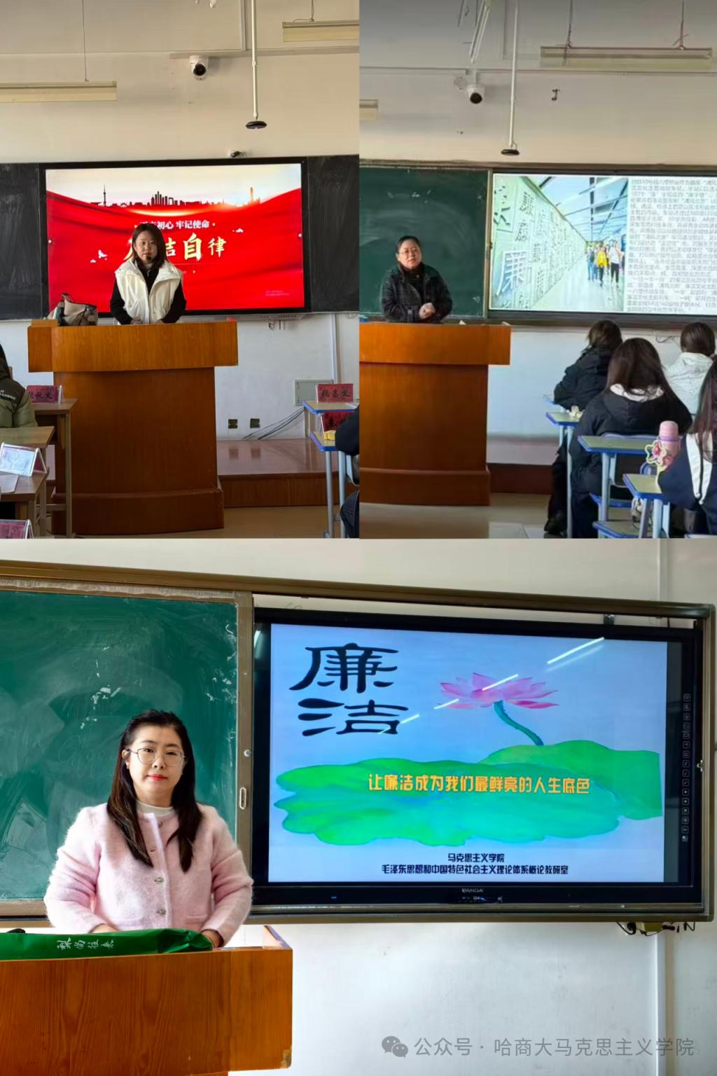 为深入学习党的二十大和二十届历次全会精神,贯彻落实党中央《关于加强新时代廉洁文化建设的意见》,围绕落实立德树人的根本任务,扎实推进廉洁文化建设与高校思想政治理论课教学的深度融合,马克思主义学院坚持每学期开展“廉洁文化”进课堂活动。近日,组织全体思政课教师结合课程内容、创新教学形式,将廉洁文化引进课堂教学,引导青年学生筑牢信仰之基、补足精神之钙、把稳思想之舵。