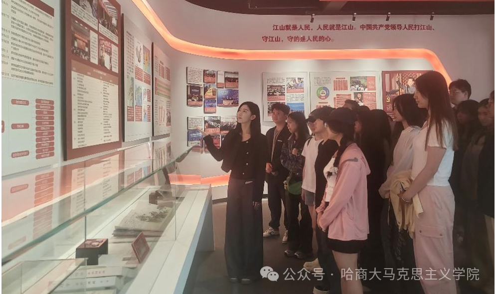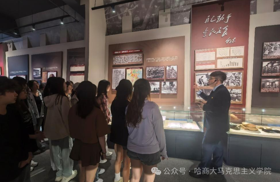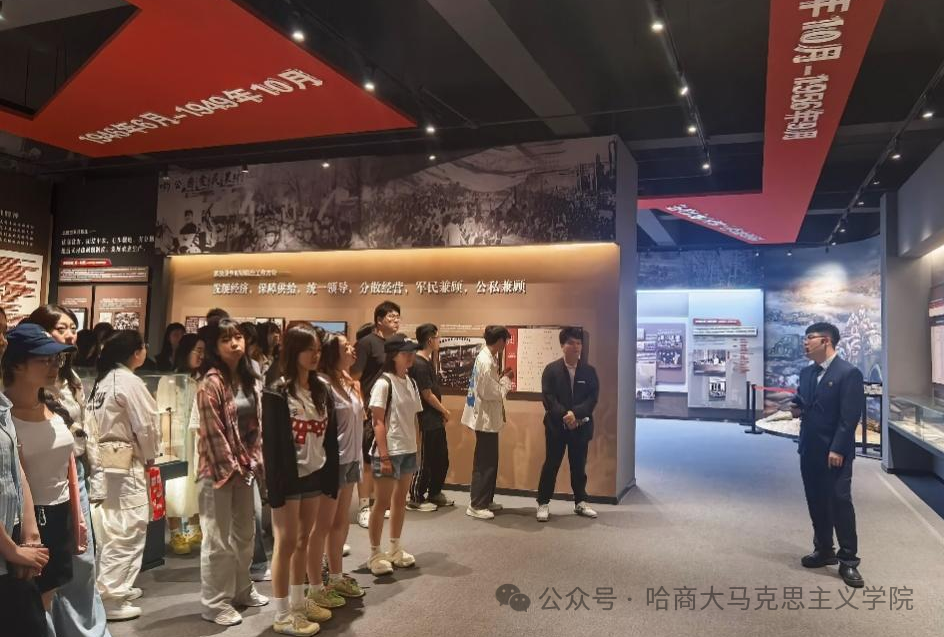 为深入贯彻落实习近平总书记关于“大思政课”建设的重要指示精神,有效发挥“大思政课”立德树人作用,坚持不懈用习近平新时代中国特色社会主义思想铸魂育人,马克思主义学院教师程宝、李婧带领2023级硕士研究生和习近平新时代中国特色社会主义思想概论课程本科学生,赴黑龙江财经学院红色财经之路博物馆,开展一场沉浸式“场馆中的思政课”。