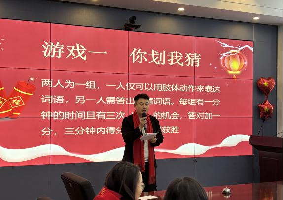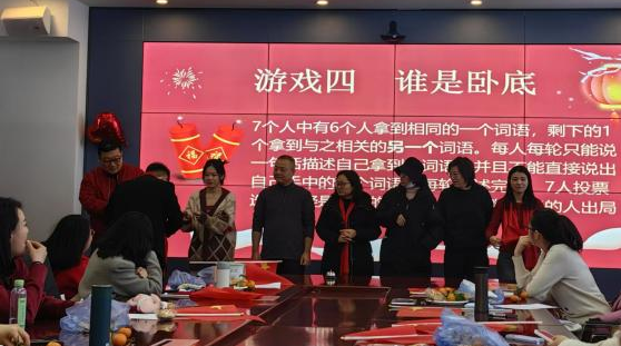 联欢会上游戏热闹非凡,现场观众纷纷参与。你划我猜,配合默契;抢凳子,你追我赶;中华小曲库,欢声笑语;谁是卧底,考验演技;猜谜语大比拼,速度智慧并存。轻松愉快的游戏环节,拉近了师生间的距离,活跃了现场气氛。