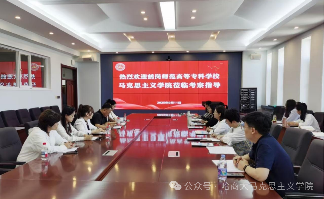 9月11日下午,鹤岗师范高等专科学校思政部主任李志强、副书记李晓冬一行6人来马克思主义学院开展调研交流。学院党委书记郑秋月、院长陈江波出席会议,学院各教研室主任以及教师代表参加交流座谈会。会议由党委书记郑秋月主持。
