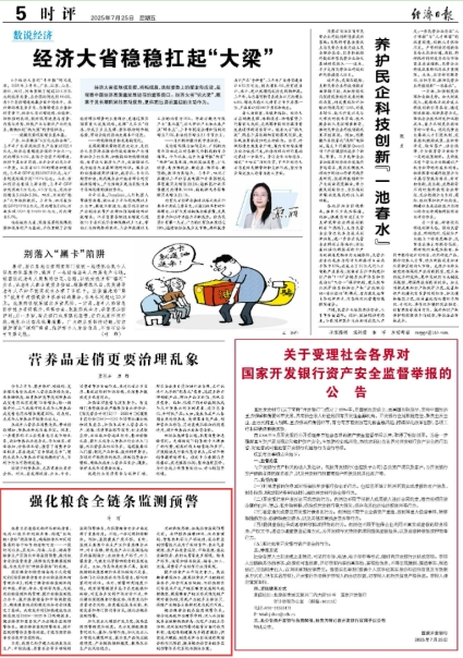 7月25日,我校财政与公共管理学院马丽副教授在《经济日报》发表时评文章《强化粮食全链条监测预警》。该文章聚焦国家粮食安全重大战略,深入分析了我国粮食监测预警体系的建设现状与挑战。并结合《加快建设农业强国规划(2024—2035年)》的宏伟目标和《国家粮食质量安全检验监测机构管理办法》的具体要求,提出系统性对策。一是加大农业大模型研发,提升预警精度和效度;二是拓展监测范围至全链条与多领域;三是利用区块链等技术促进产销协同,保障农民利益;四是通过数字治理破解数据孤岛,强化制度与区域适配。